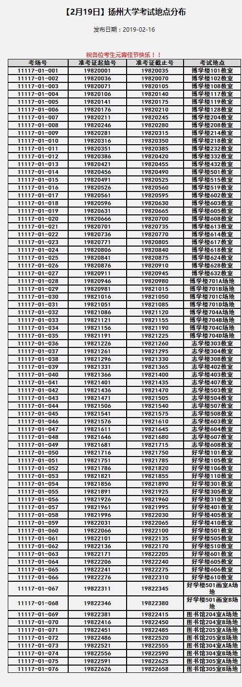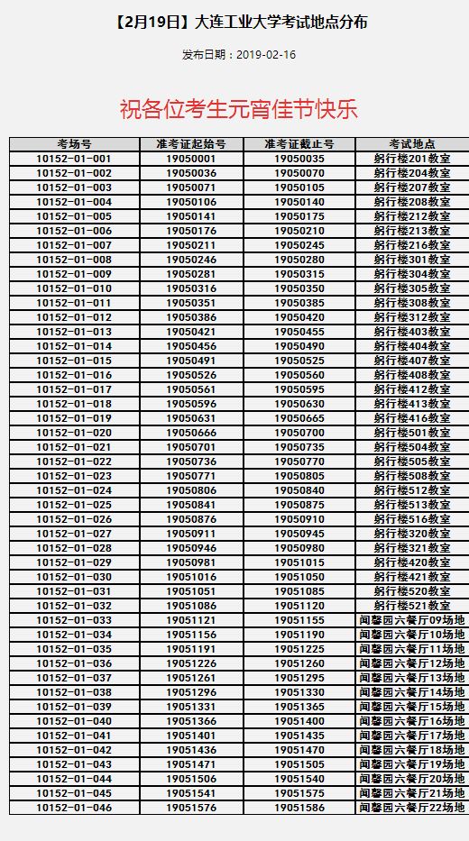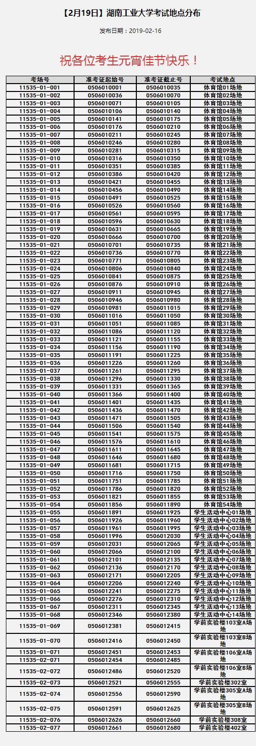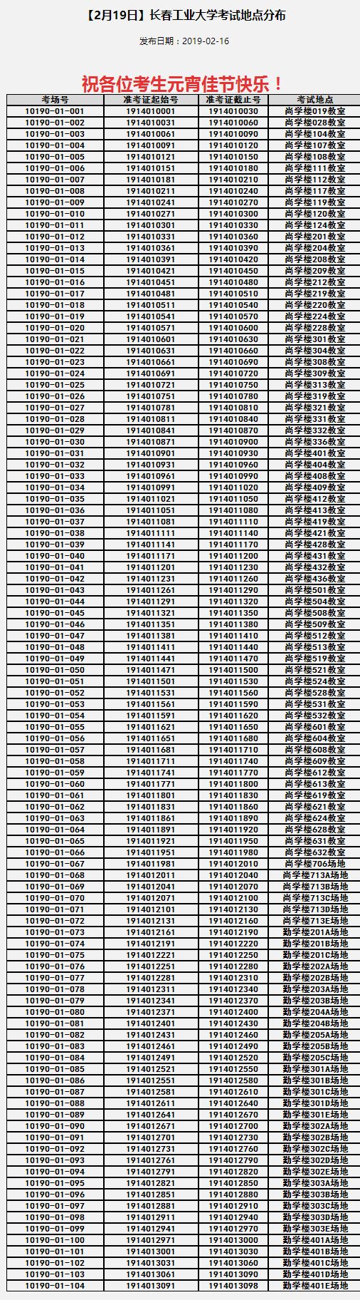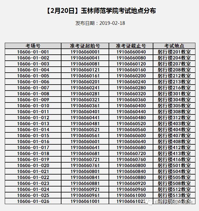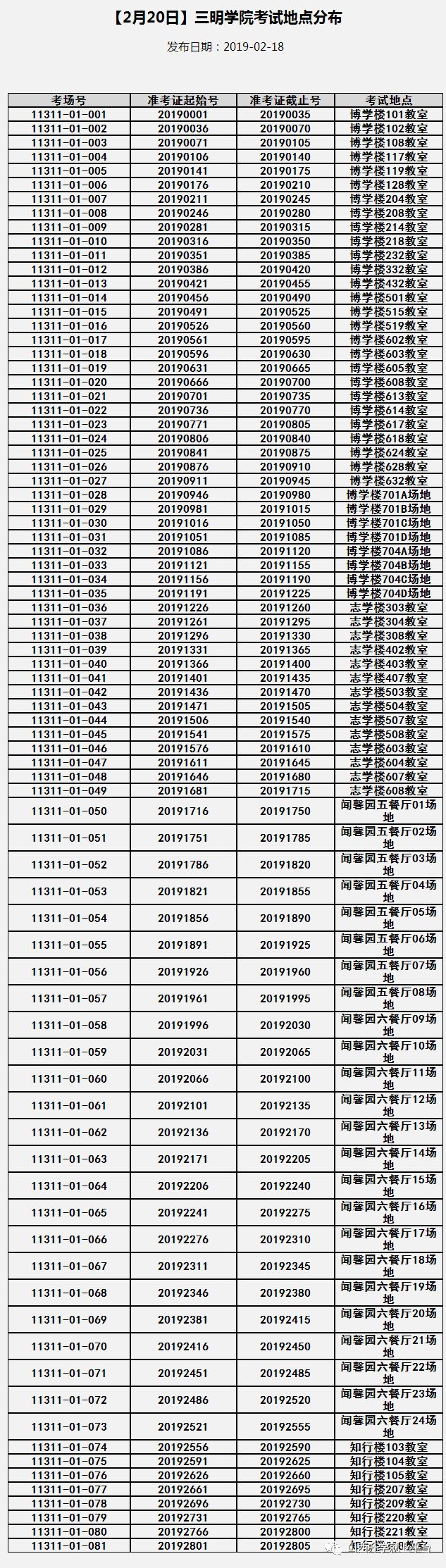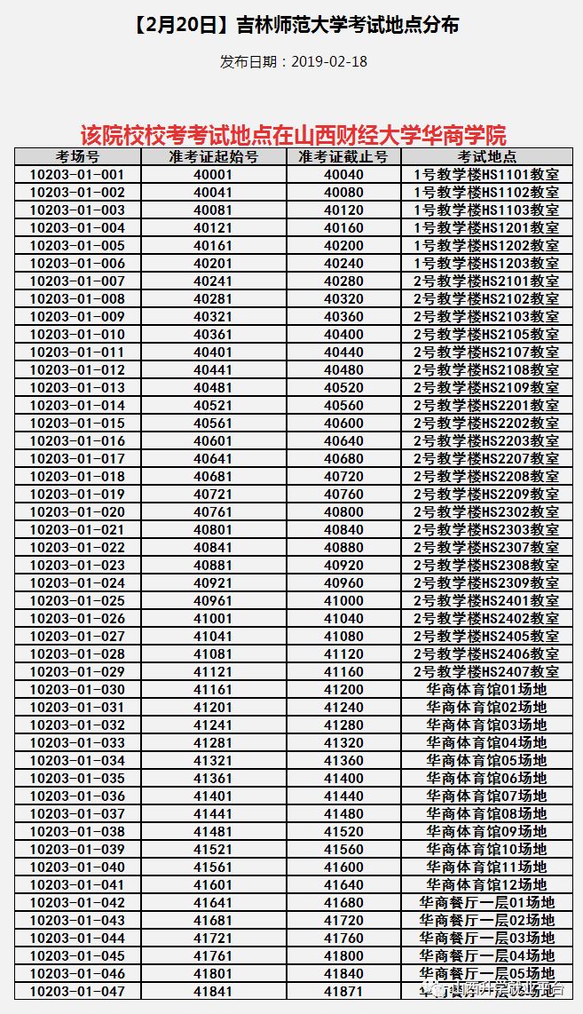 【2月19日】来晋校考院校考场安排公告(山西工商学院考点)