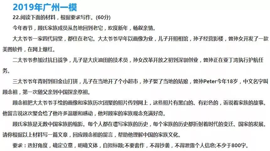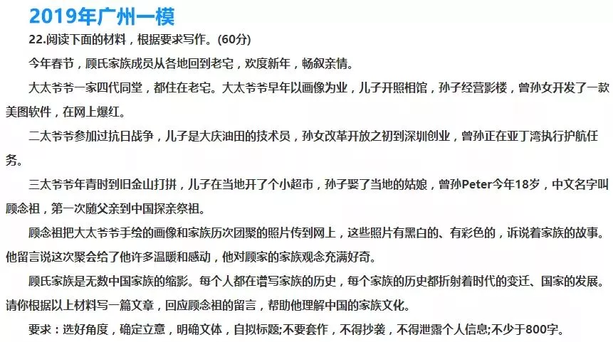 其实,近年的语文命题中,已有十分明显的倾向和指导,例如2019年广一模、市调研考及2016年广州中考卷,都考查了有关文化认同、文化自信和大国自信的内容。