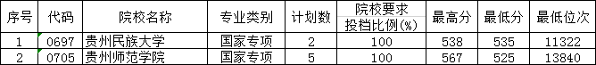 贵州省2019年高考国家专项计划第4次补报志愿投档情况