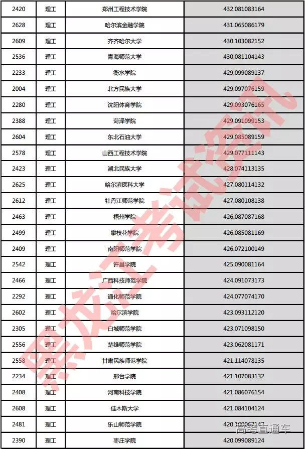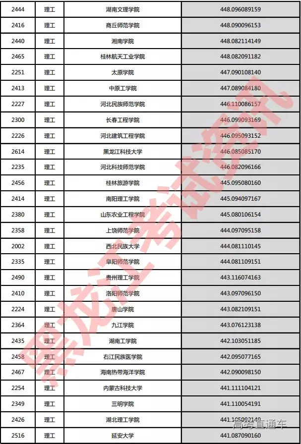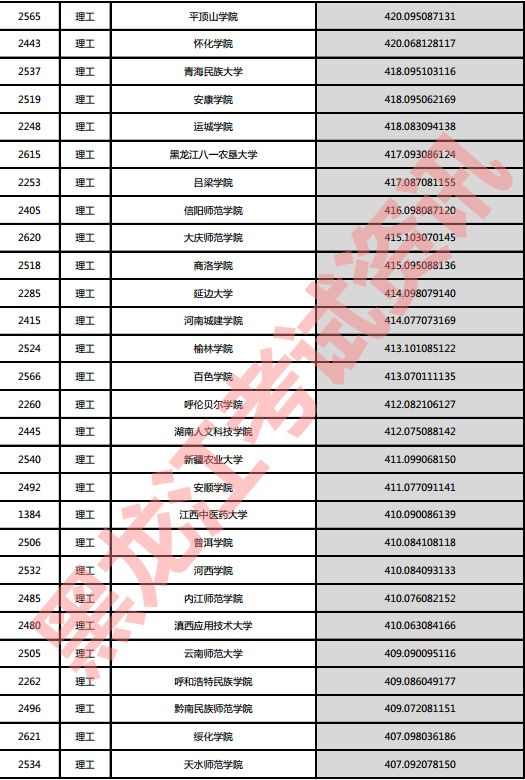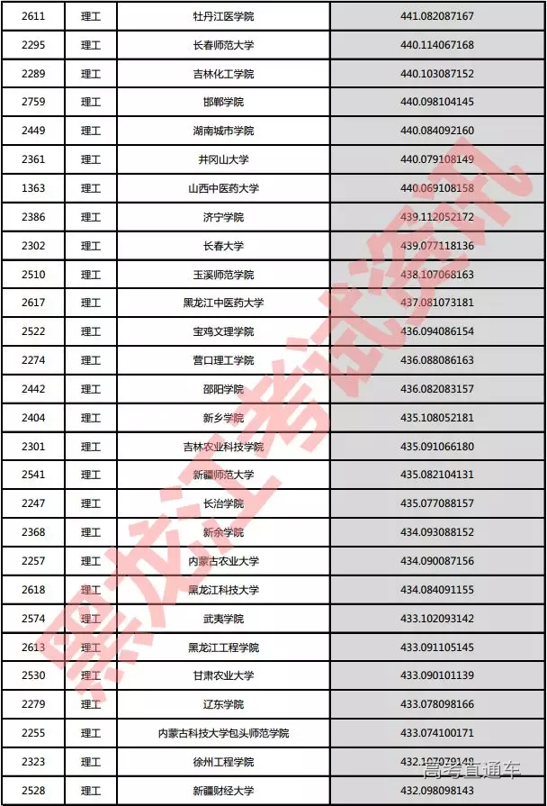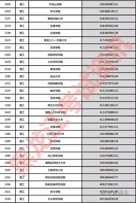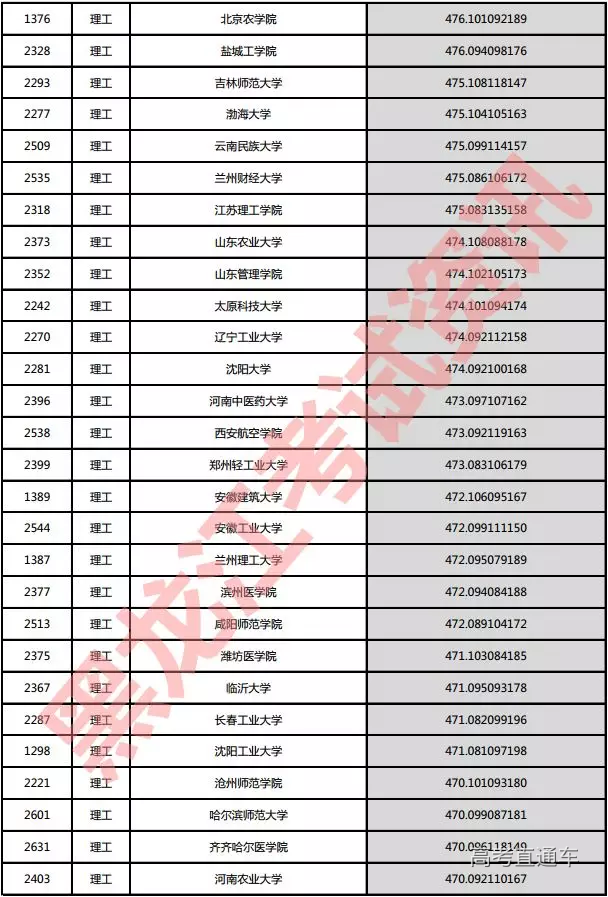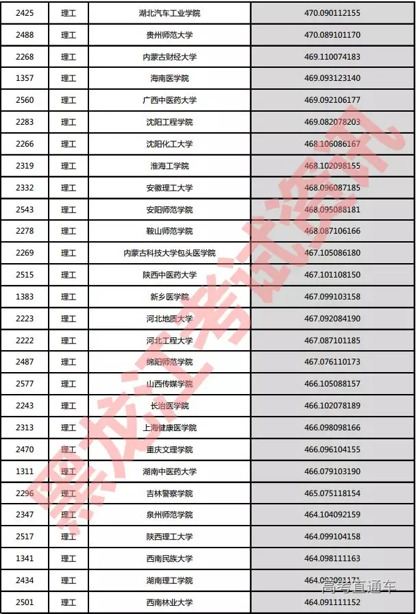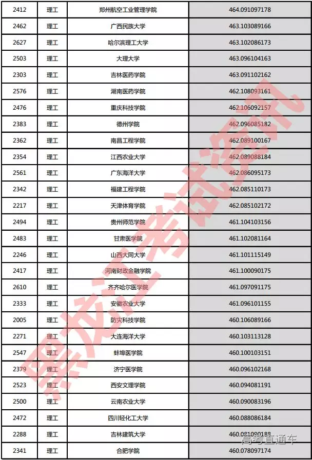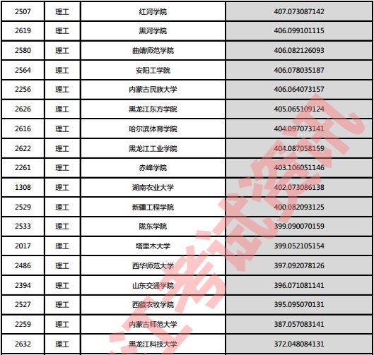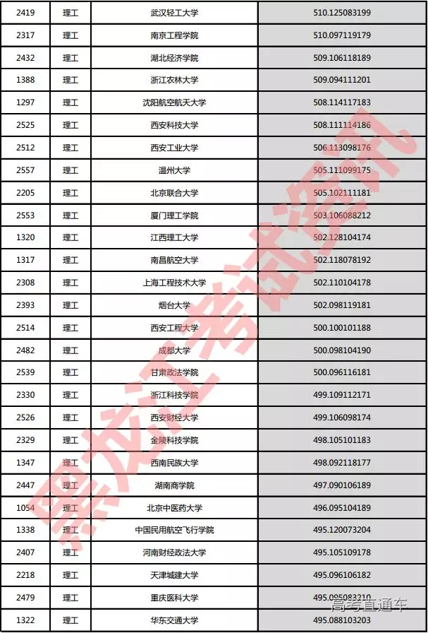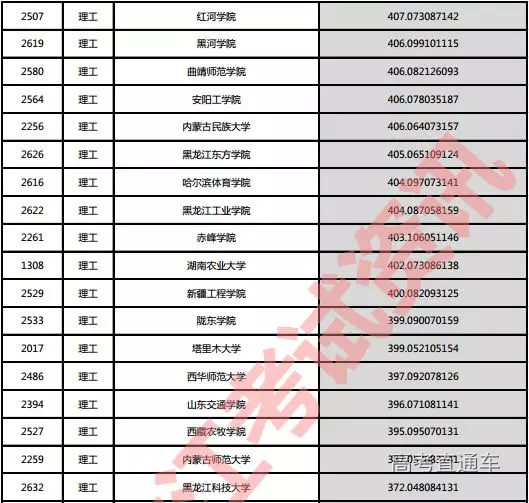 理工院校投档分数说明:小数点后一至三位为数学成绩,四至六位为外语成绩,七至九位为理科综合成绩。