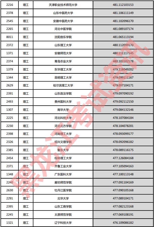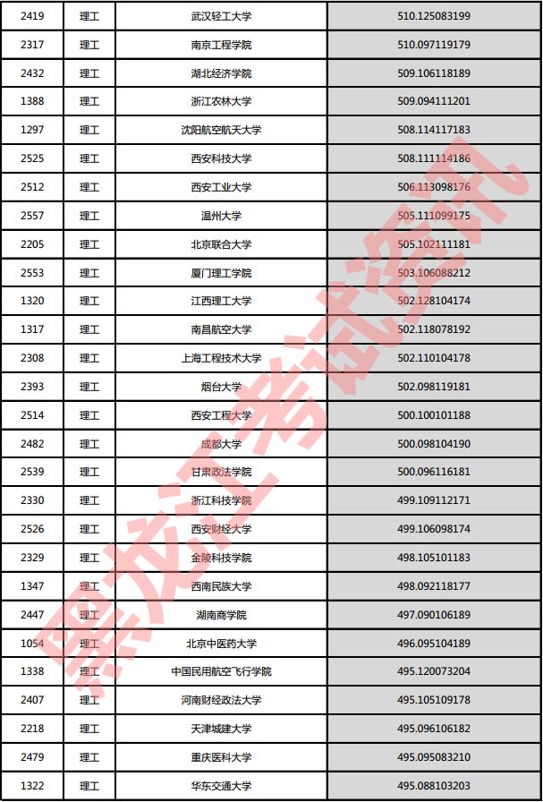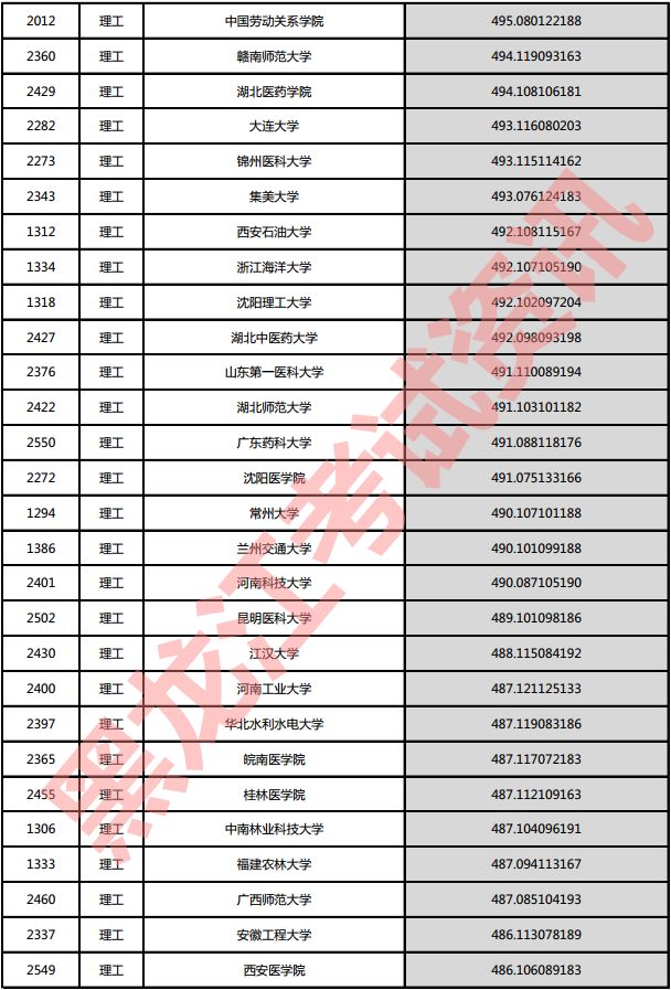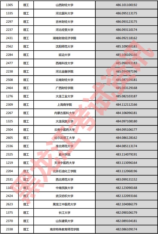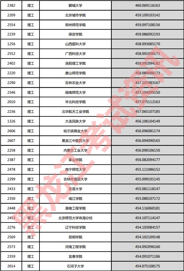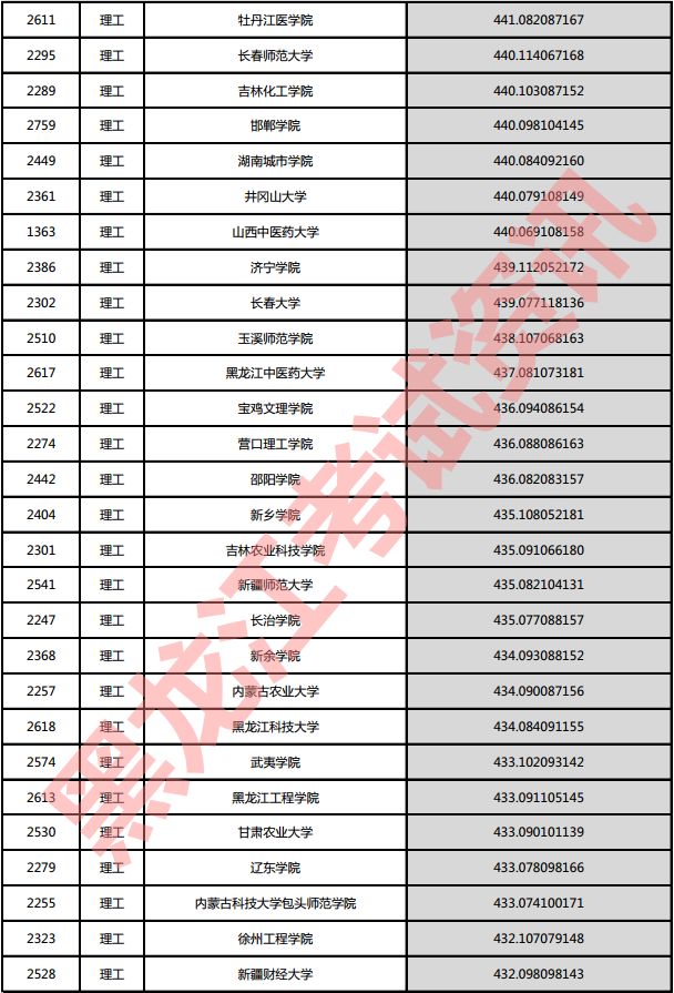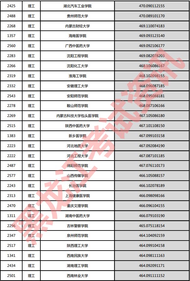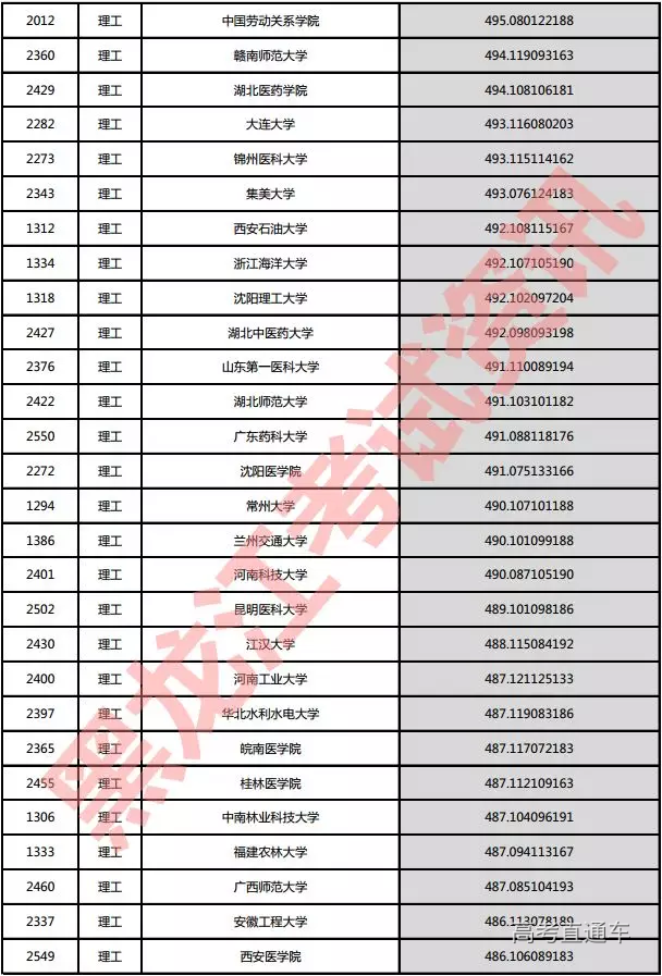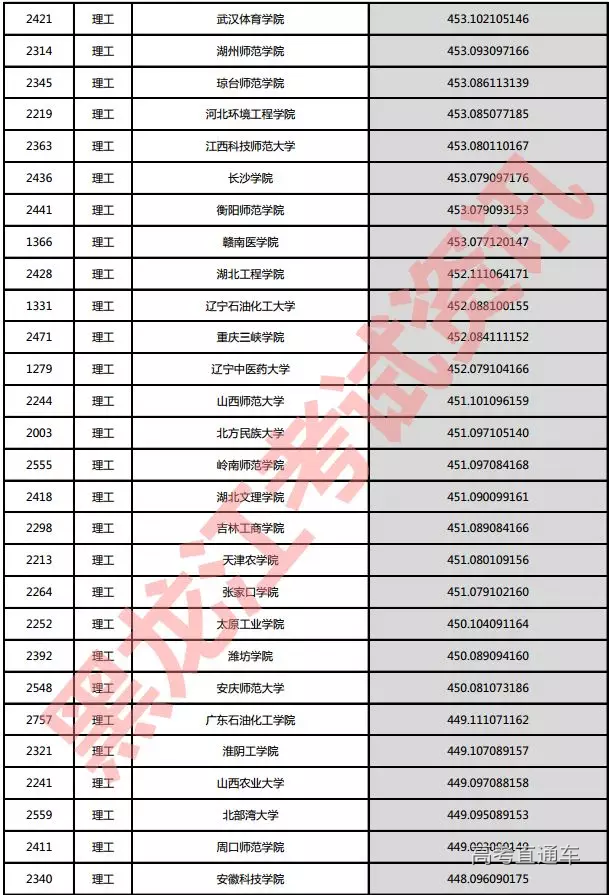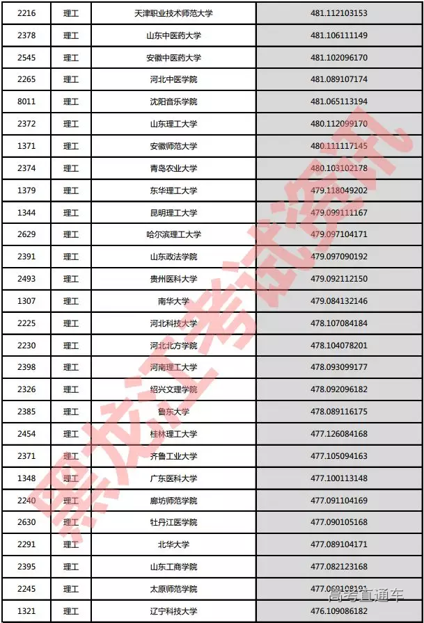 理工院校投档分数说明:小数点后一至三位为数学成绩,四至六位为外语成绩,七至九位为理科综合成绩。