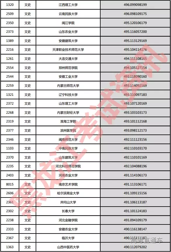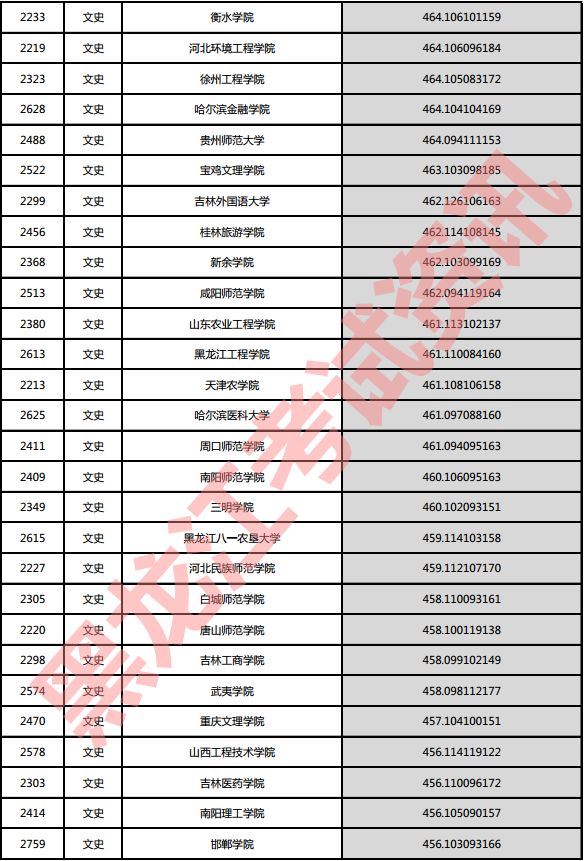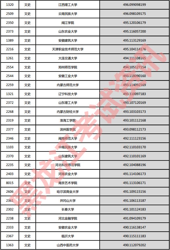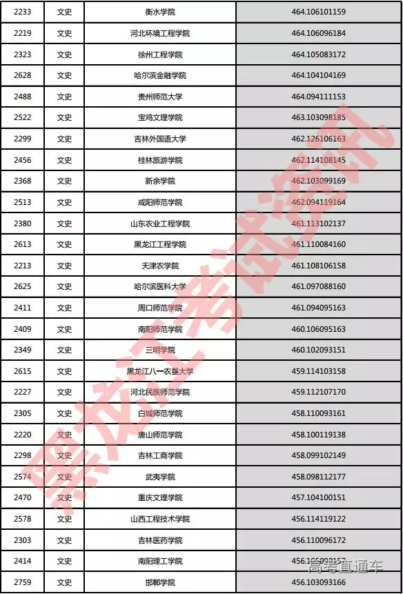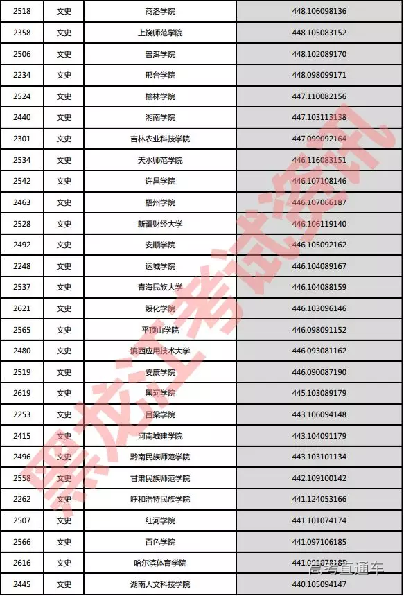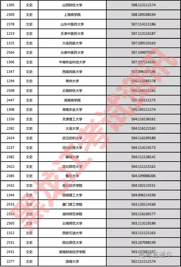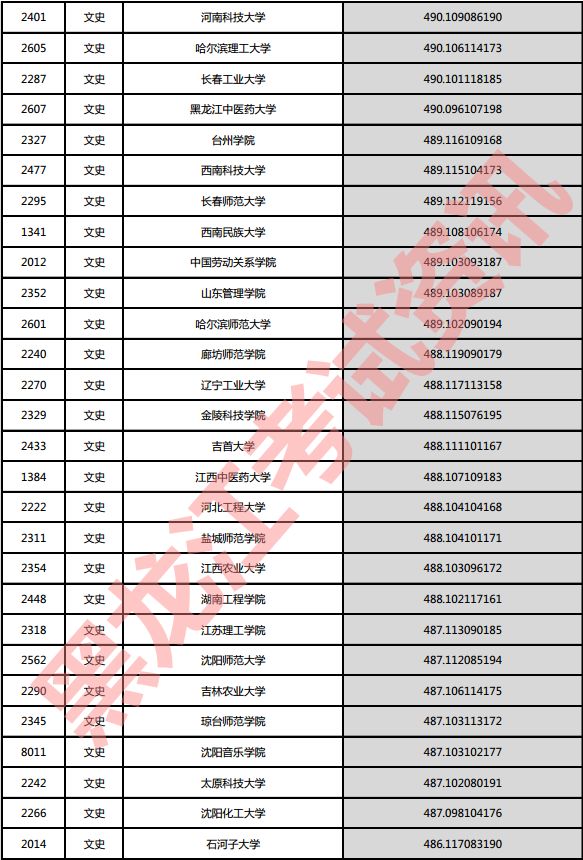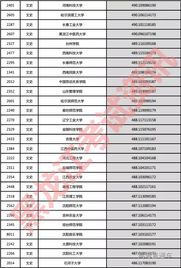 文史院校投档分数说明:小数点后一至三位为语文成绩,四至六位为外语成绩,七至九位为文科综合成绩。