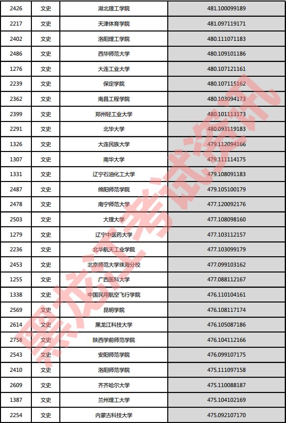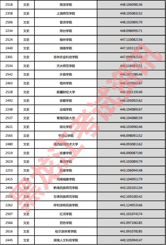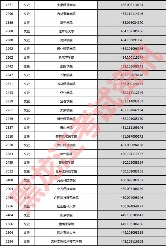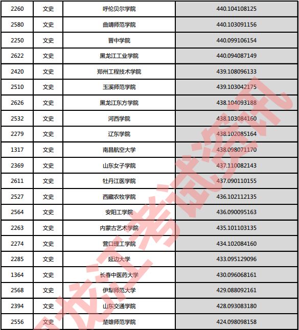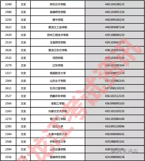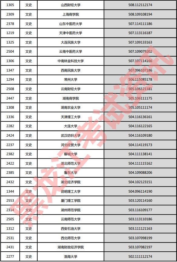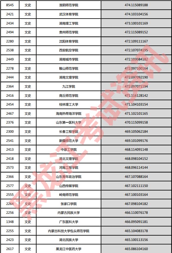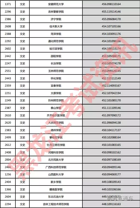 文史院校投档分数说明:小数点后一至三位为语文成绩,四至六位为外语成绩,七至九位为文科综合成绩。