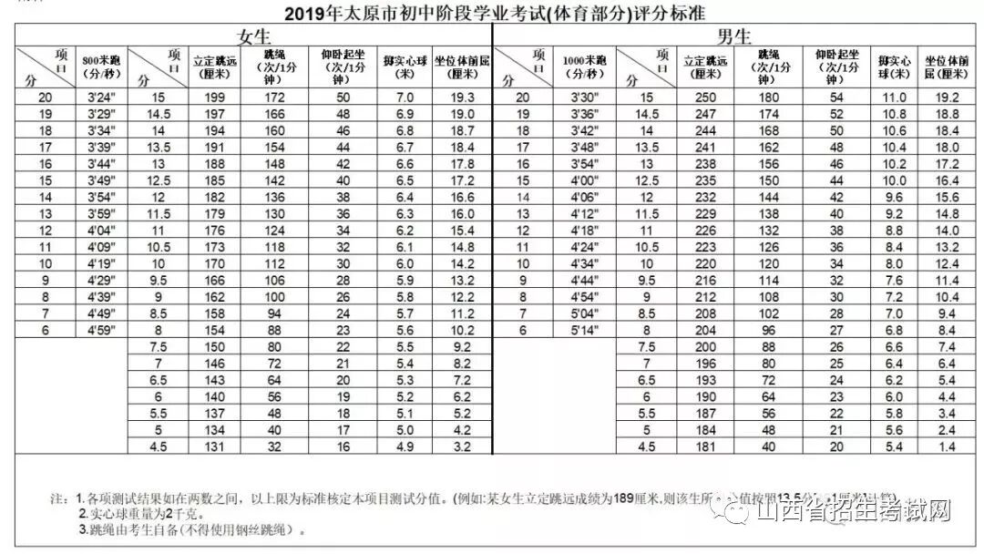 附件:2019年太原市初中学业考试(体育部分)评分标准