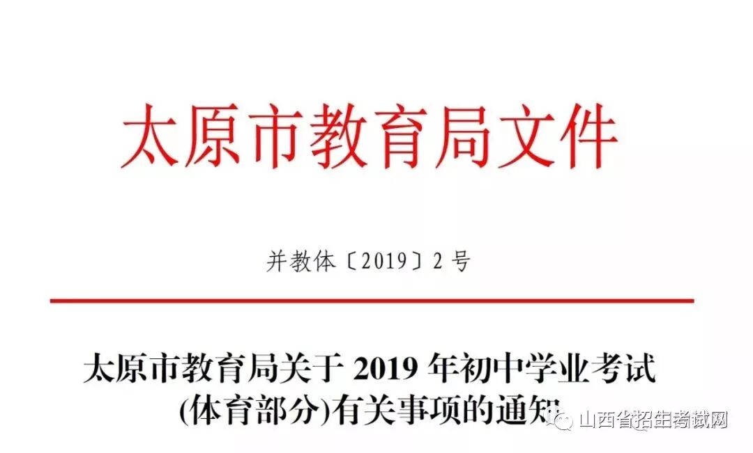 6.有关体育考试的其他具体事宜,详见《太原市2019年初中学业考试(体育部分)工作实施方案》(另文下发)。