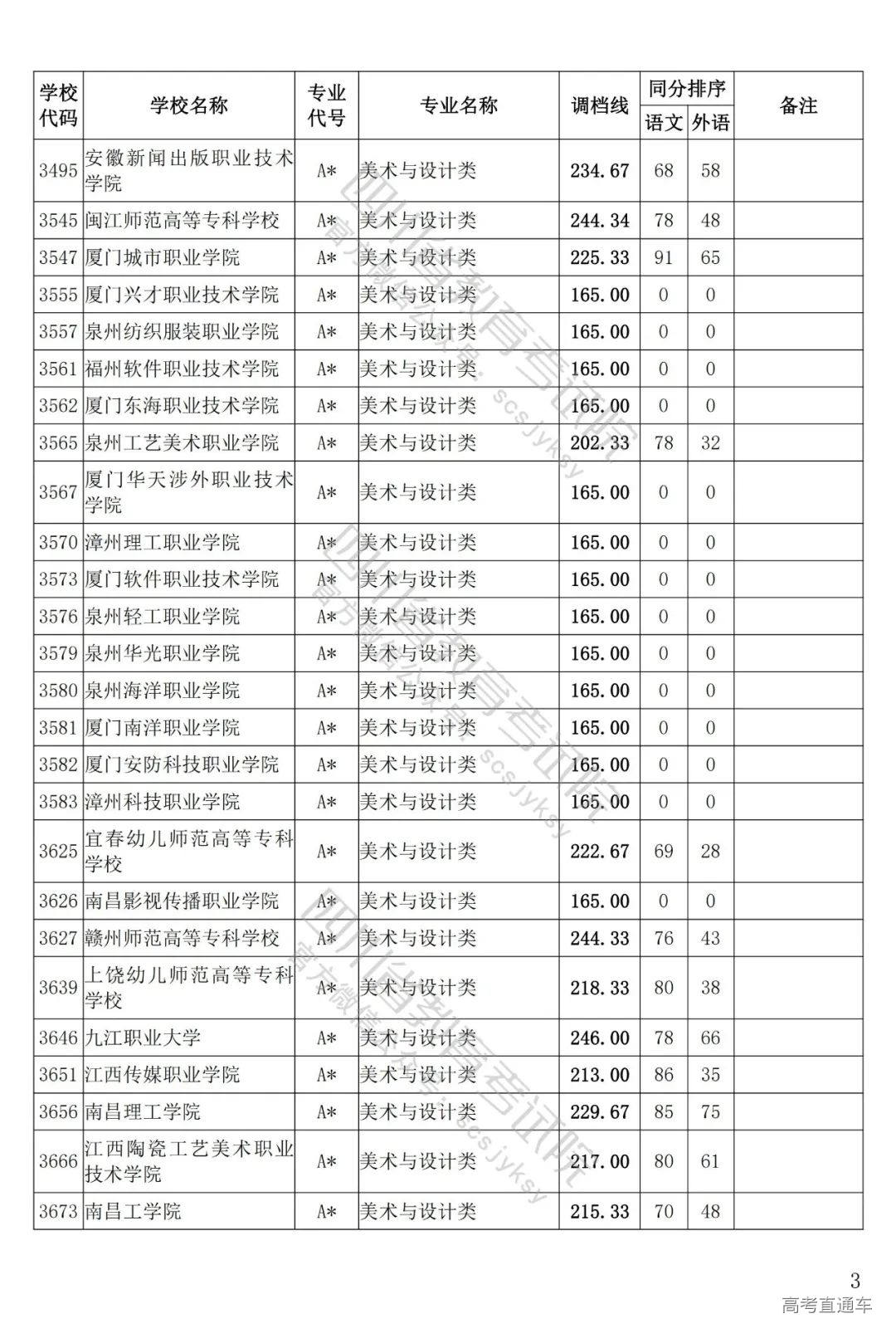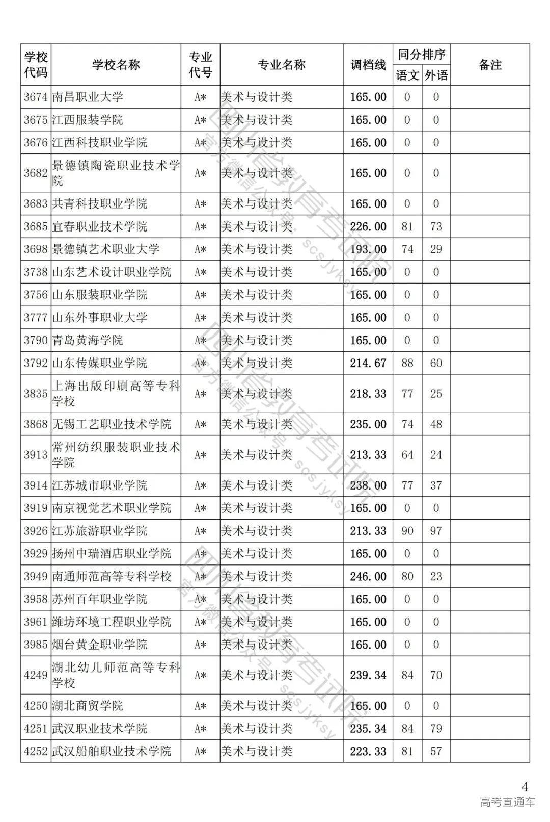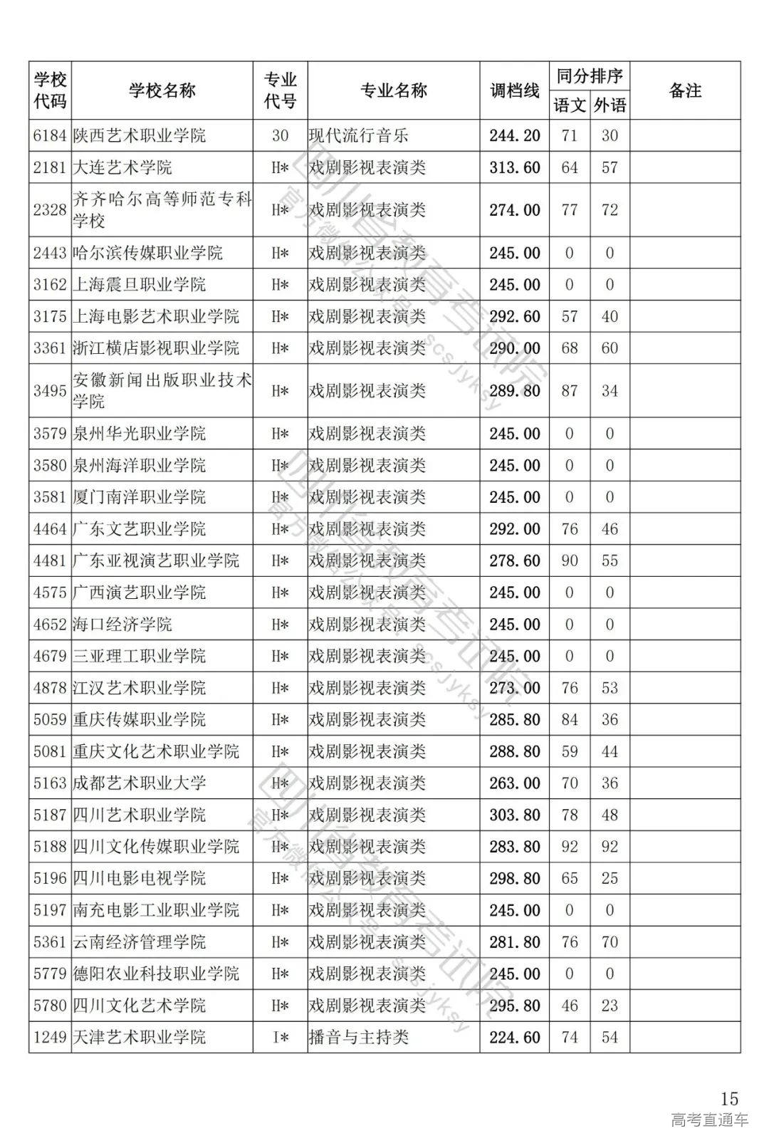 从投档情况看,上海、广东、浙江、江苏等地区的高校,一轮投档后生源质量好。如招收戏剧影视表演类的上海电影艺术职业学院、广东文艺职业学院、浙江横店影视职业学院的调档线均居于我省同类专业前十名;苏州职业大学、苏州工艺美术职业技术学院、浙江艺术职业学院的美术与设计类在我省调档线也都居于前十。