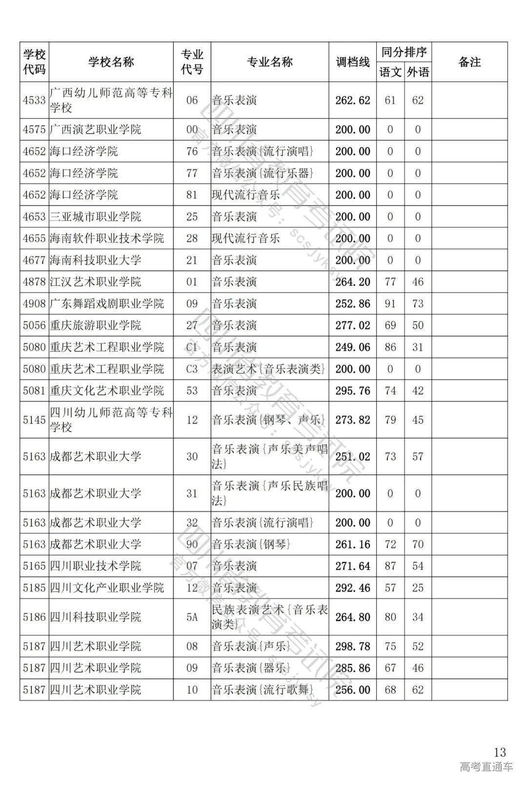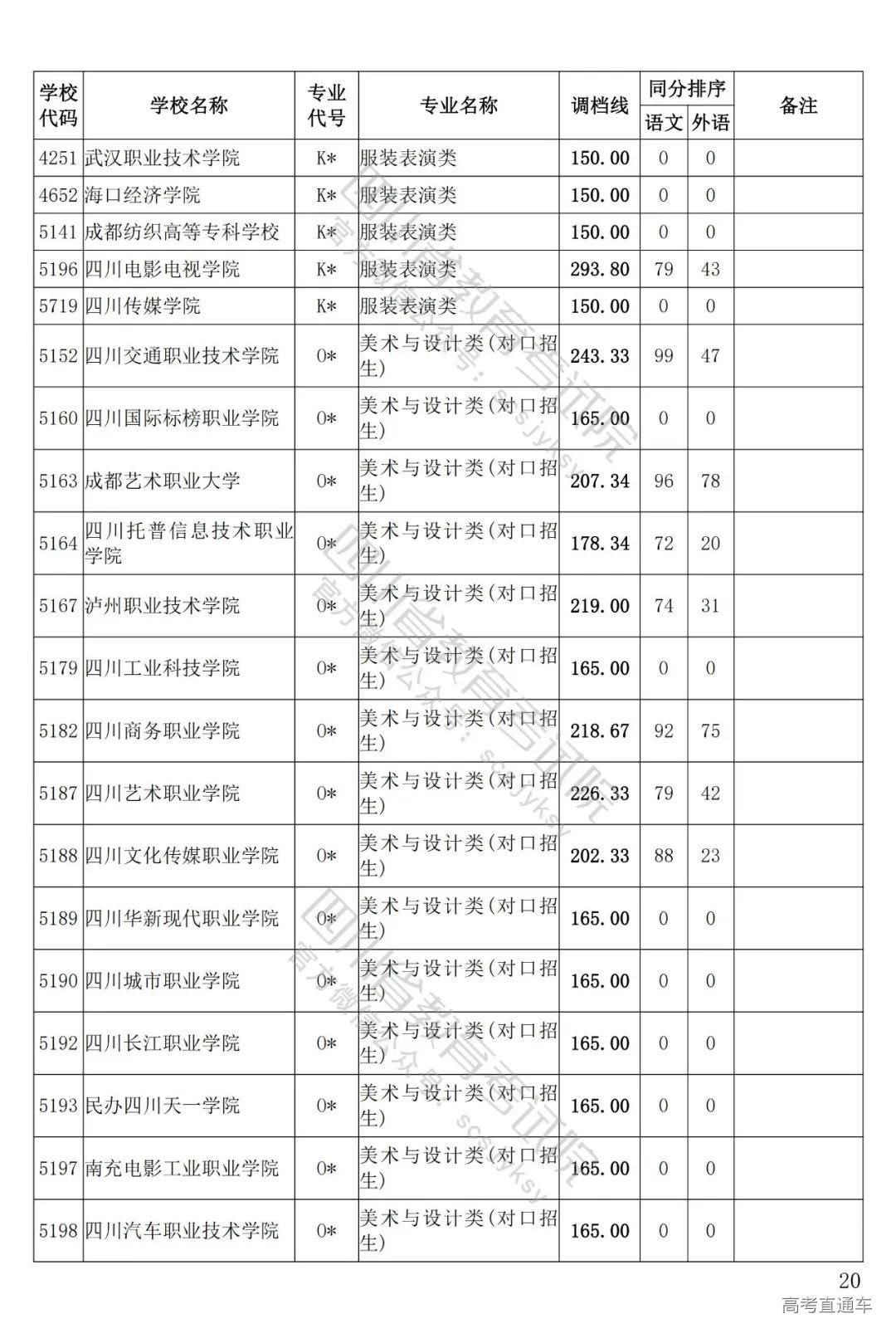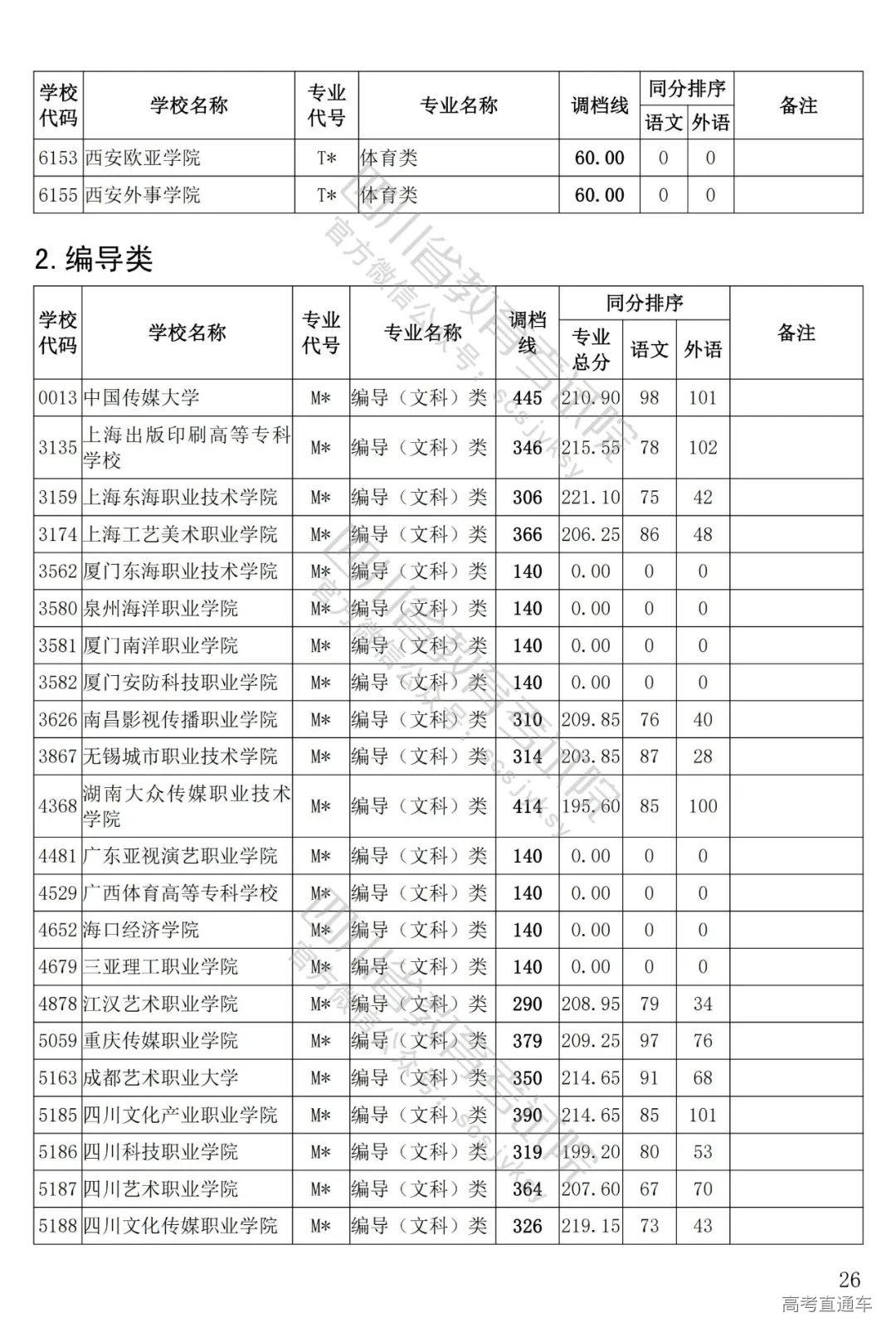如舞蹈类专业调档线前十的院校中,省内院校占了6所,分别为四川大学锦江学院、四川传媒学院、四川艺术职业学院、四川电影电视学院、四川文化产业职业学院、四川幼儿师范高等专科学校。此外,四川艺术职业学院的书法学类专业和四川电影电视学院的编导(理科)、音乐学类专业在我省同类专业调档线排名中均位列第一。