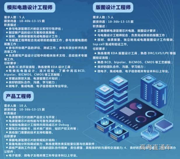 第二张图,是上海芯龙半导体技术股份有限公司,在南京工业大学的招聘要求,针对微电子,集成电路、电子信息等专业。由此看出,作为芯片公司,由于业务不同,对人才专业的需求,是不尽相同的。