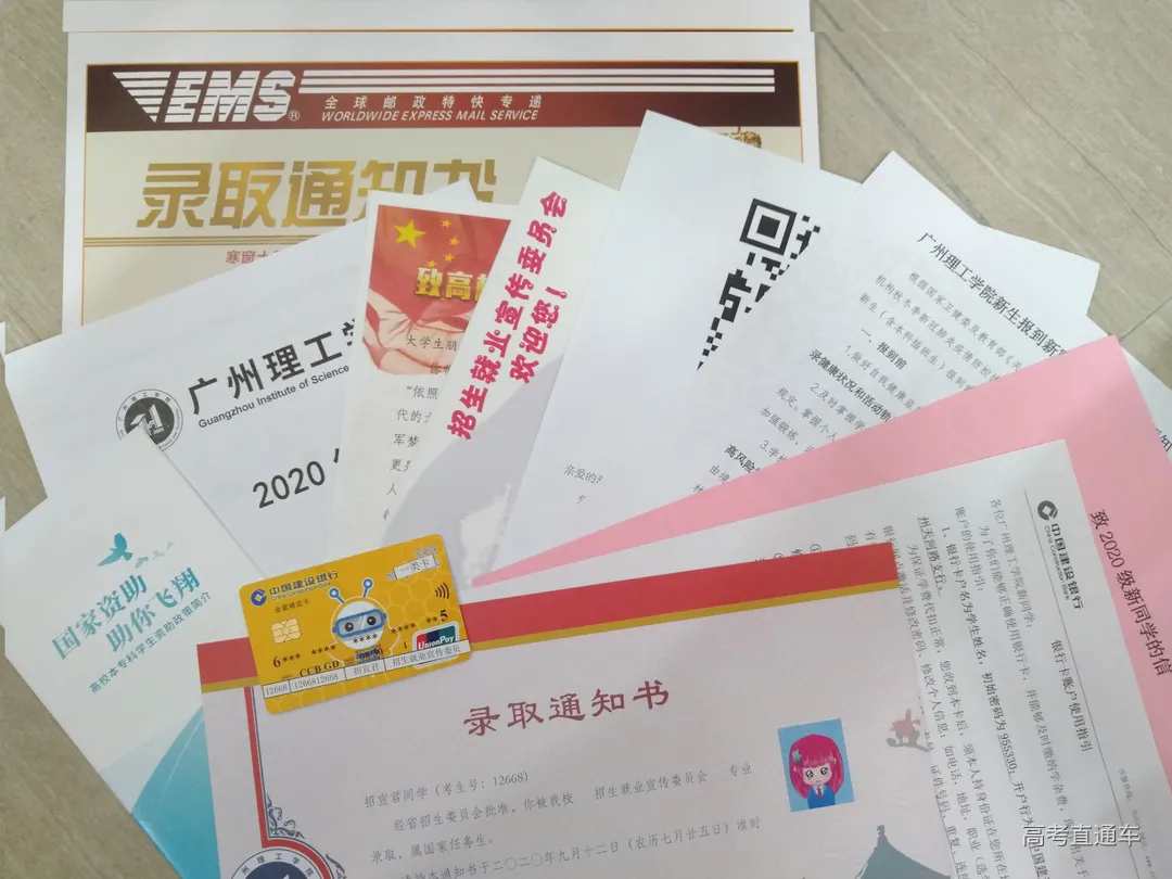 录取通知书都装了什么? 录取通知书 中国建设银行卡 中国建设银行(银行账户使用指引) 入学须知 入学、学生资助工作指南 ①易班注册 ②广东省学生资助政策简介 ③贫困生认定 ④建档立卡 ⑤生源地贷款 给大学生的一封信 高校本专科学生资助政策简介 广州理工学院手绘地图 致高校青年学生的一封公开信 广州理工学院新生报到新冠肺炎疫情防控须知 当你拿到 属于你自己的录取通知书时 你有没有想过 这份大礼包是如何产生的呢? (点击观看录取通知书准备过程) 小粉衣们日夜辛勤劳作 不漏掉每一份录取通知书 只为让新生更快收获这份喜悦 更快了解我校资讯 录取通知书装袋步骤 01 · 整理资料 02 · 核对信息 03 · 打印录取通知书 04 · 贴快递单 05 · 装袋 06 · 复查审核 07 · 整装待发 经过老师和志愿者们的加班加点 终于把3676份本科生的录取通知书发出 预计明天可以查询快递信息 请各位萌新稍安勿躁噢! 录取通知书查询方法 关注“EMS中国邮政速递物流”公众号➡点击下方“查件”➡选择“录取通知书”➡输入邮件号/准考证号/考生号 录取通知书已全部发出 你准备好了吗? 我们在广州理工学院 等你来! 🏃♀️🏃♂️