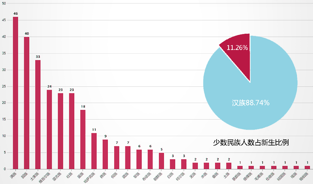 全国人民一家亲 1 满族 46人 2 回族 40人 3 土家族 33人 4 维吾尔族 24人 5 蒙古族 23人 6 壮族 23人 7 苗族 18人