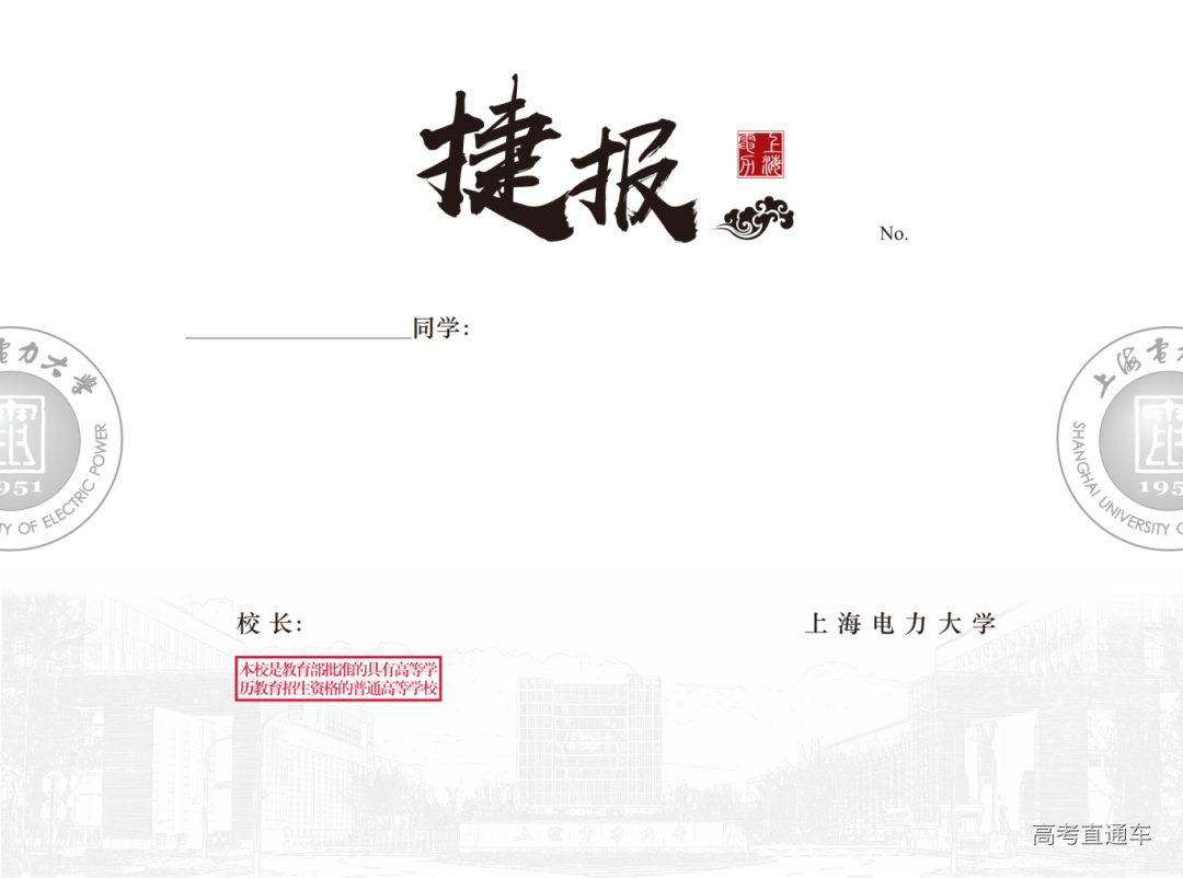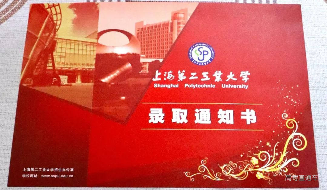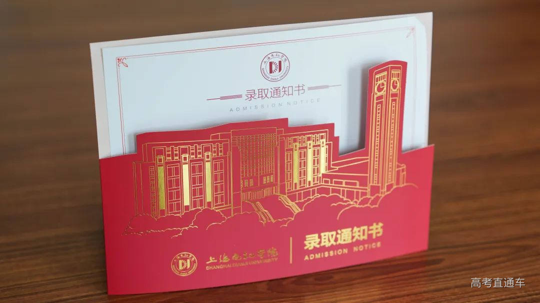 上海电力大学录取通知书以金色和红色为主色调,传递着喜悦与自豪。通知书上印着的学校校徽、校园标志性建筑与“爱国勤学 务实奋进”的校训,在鲜艳色彩的映衬下,显得气势恢宏。