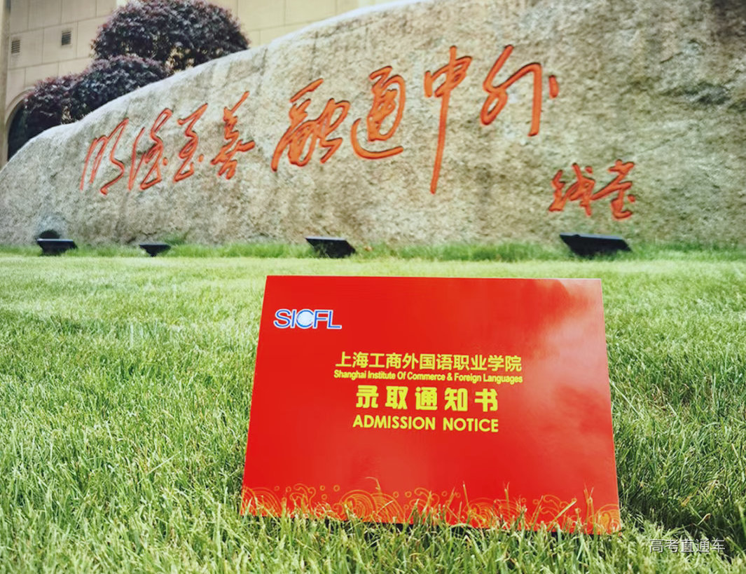 上海工商外国语职业学院录取通知书封面色调为亮红色,底部配以波浪线,祝愿新生乘风破浪、大展宏图。通知书内页印有学校校训“明德至善 融通中外”,封底则是美丽的工商外校园鸟瞰图,传递学校对新生未来的美好祝愿。