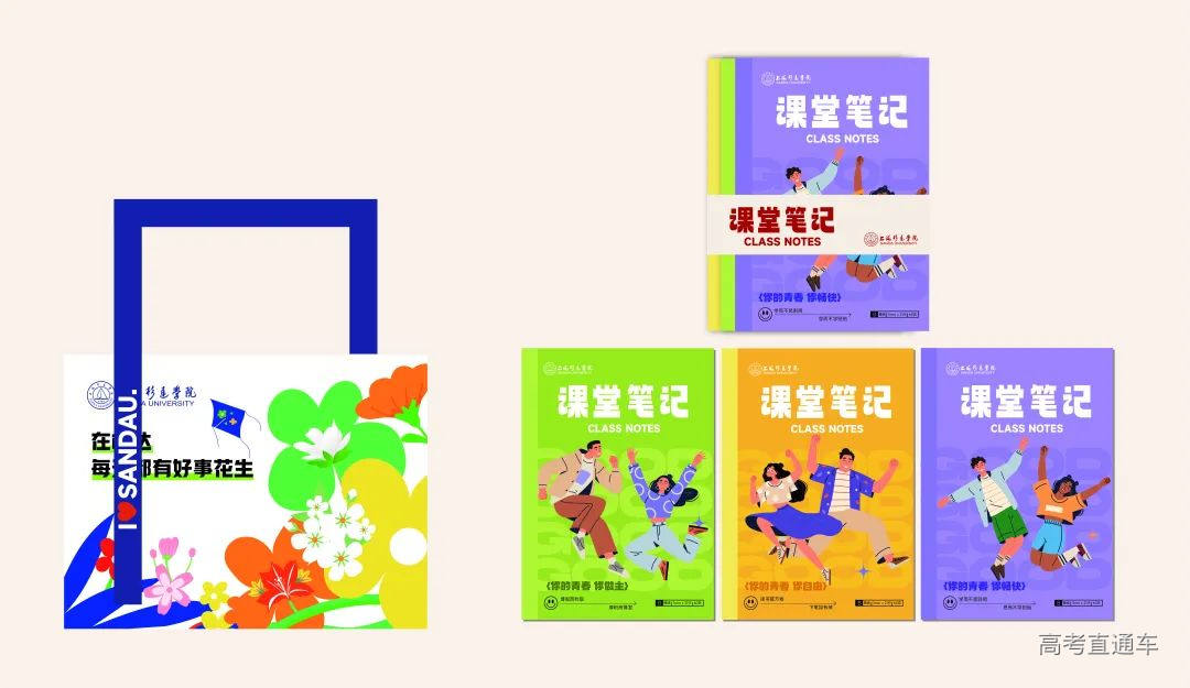 上海杉达学院录取通知书上,印有校训“勤奋 求是 开拓 创新”和办学理念等文字,以及金海校区图书馆和教学群楼侧影、嘉善校区图书馆和理念石水印图案。新生帆布袋正面汇集了上海杉达学院嘉善校区种植的花卉,如杜鹃、樱花、梨花、玉兰等。祝愿每位杉达人每天都有好事“花”生。