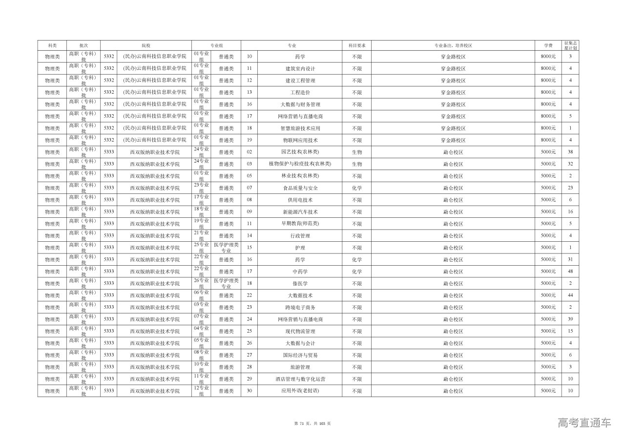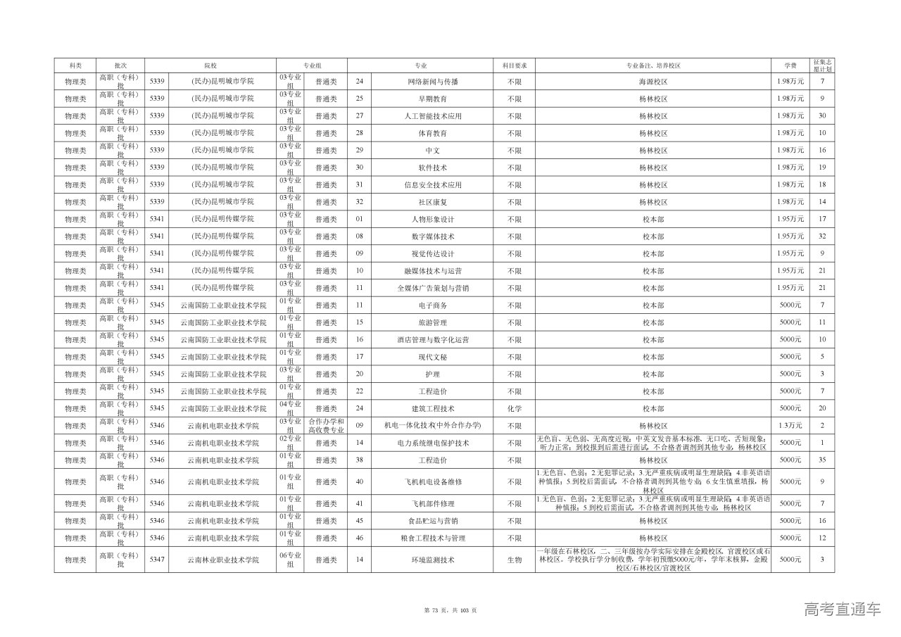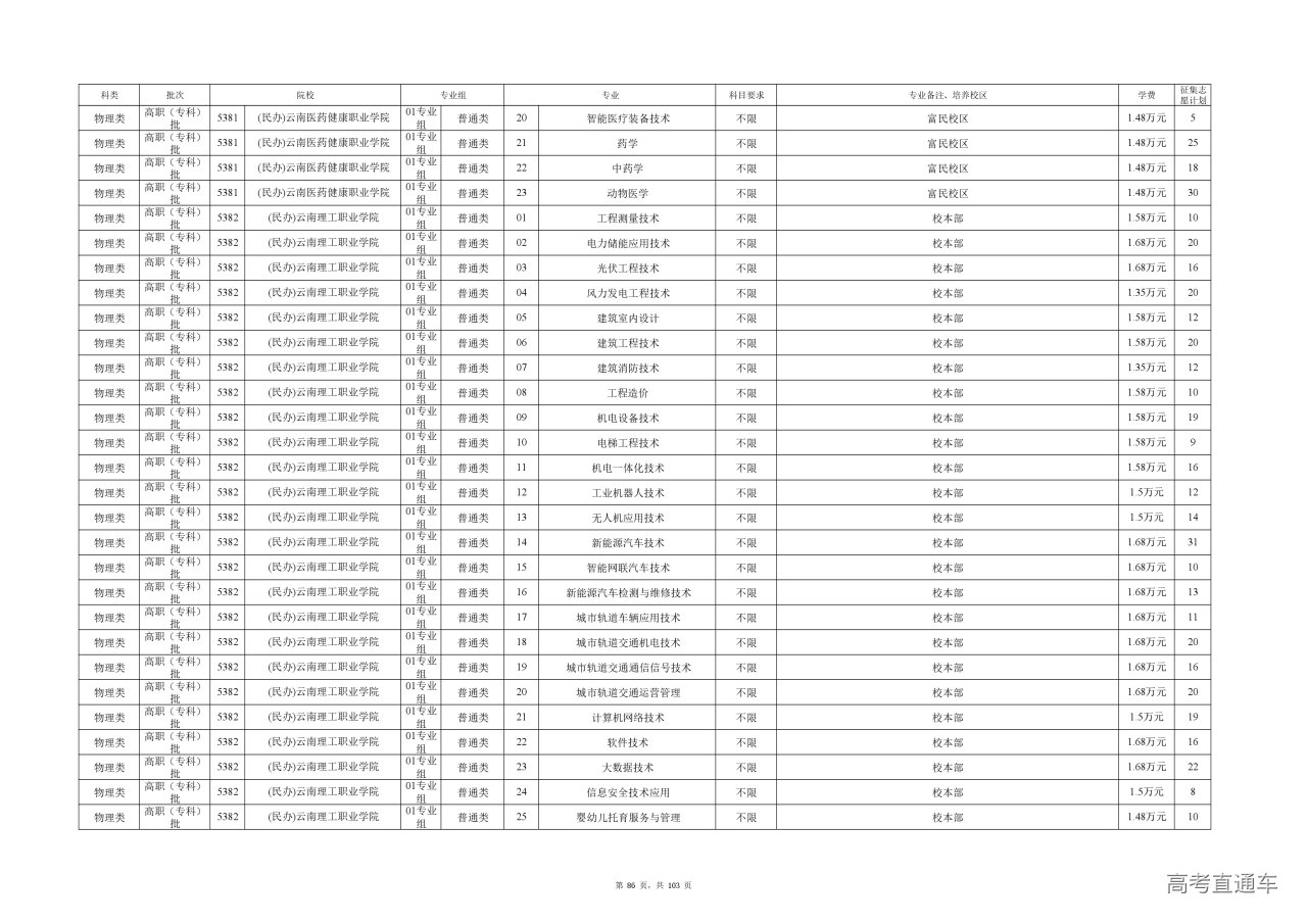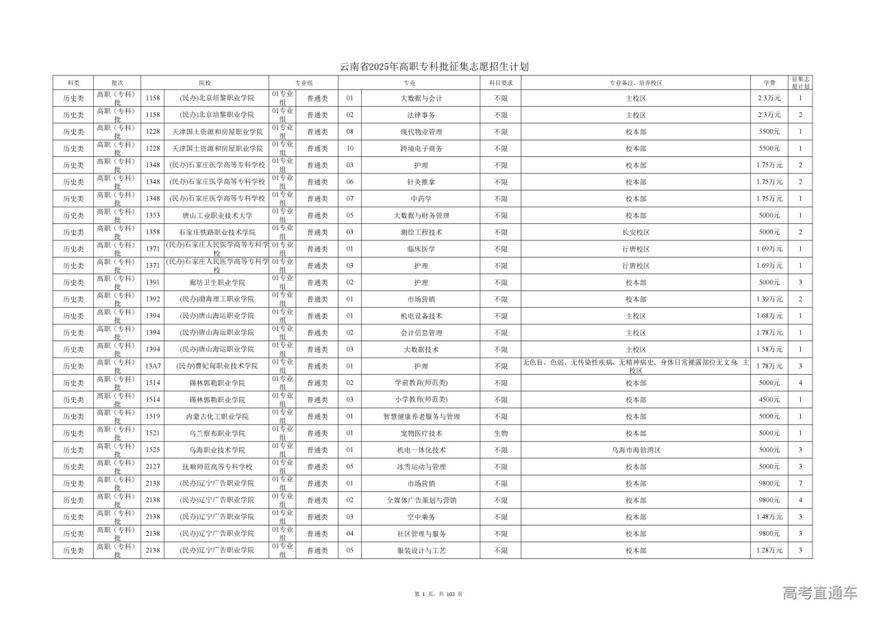 附件(点击查看或下载):云南省2025年高职专科批征集志愿计划信息.xlsx