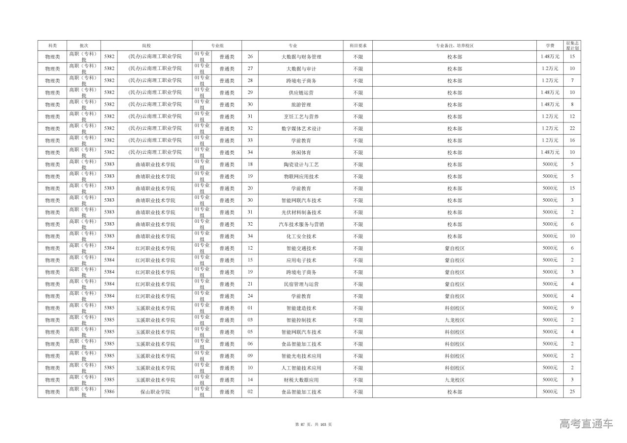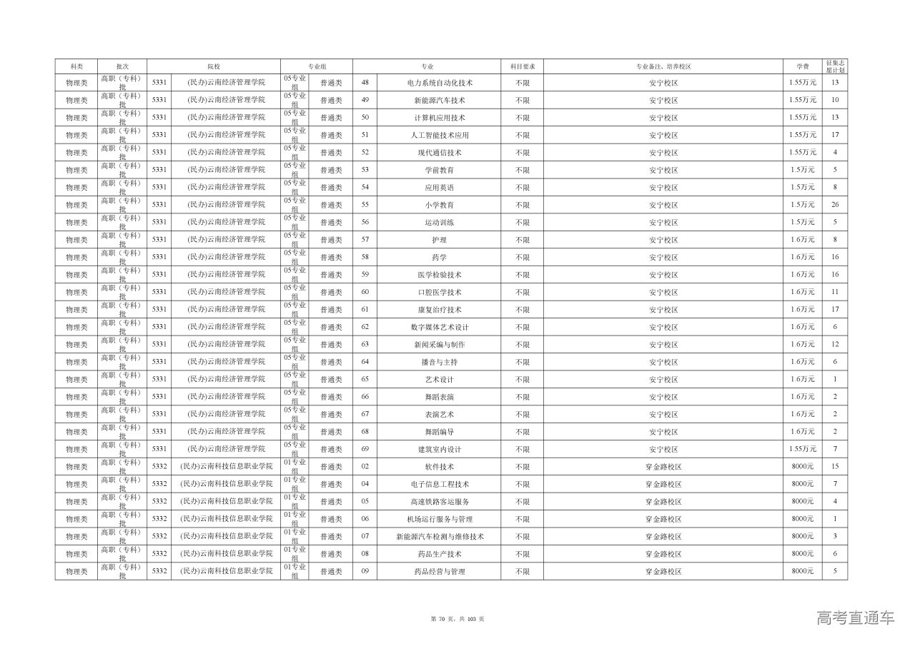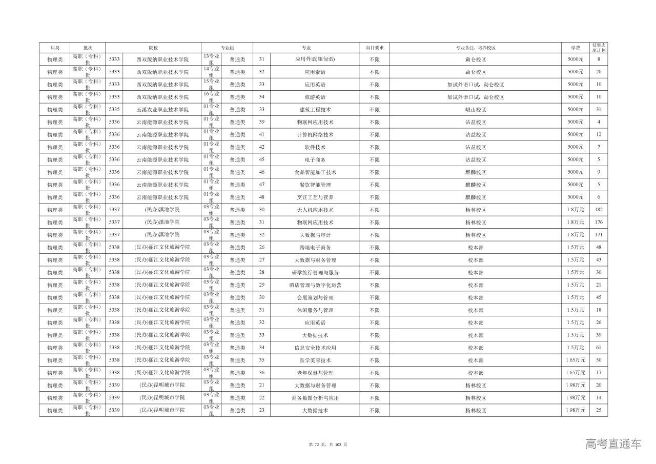 附件(点击查看或下载):云南省2025年高职专科批征集志愿计划信息.xlsx