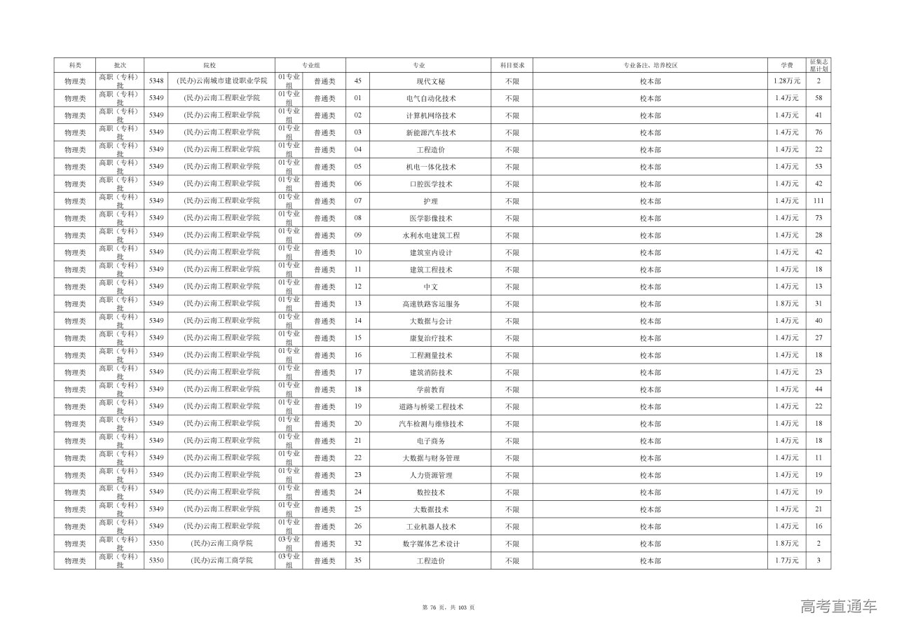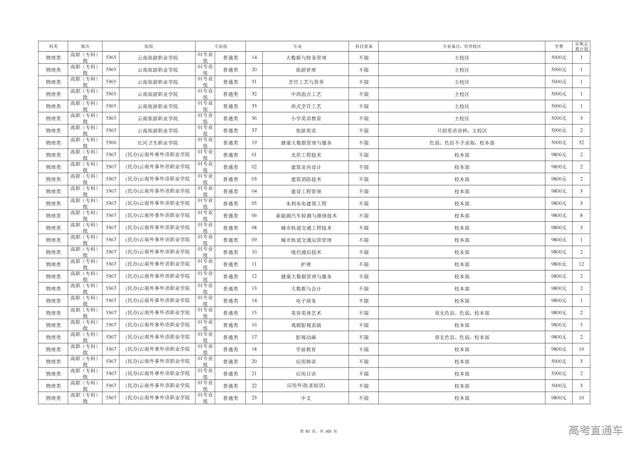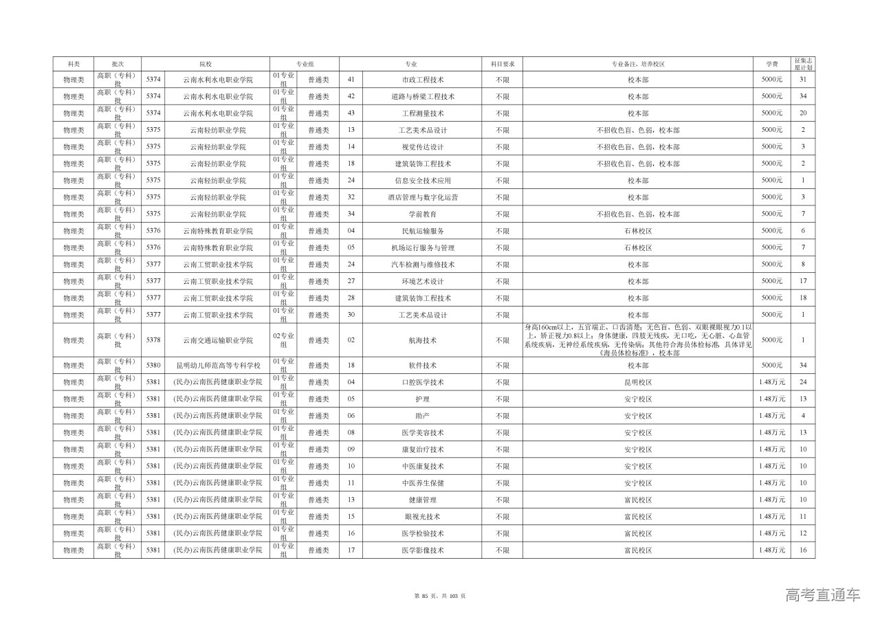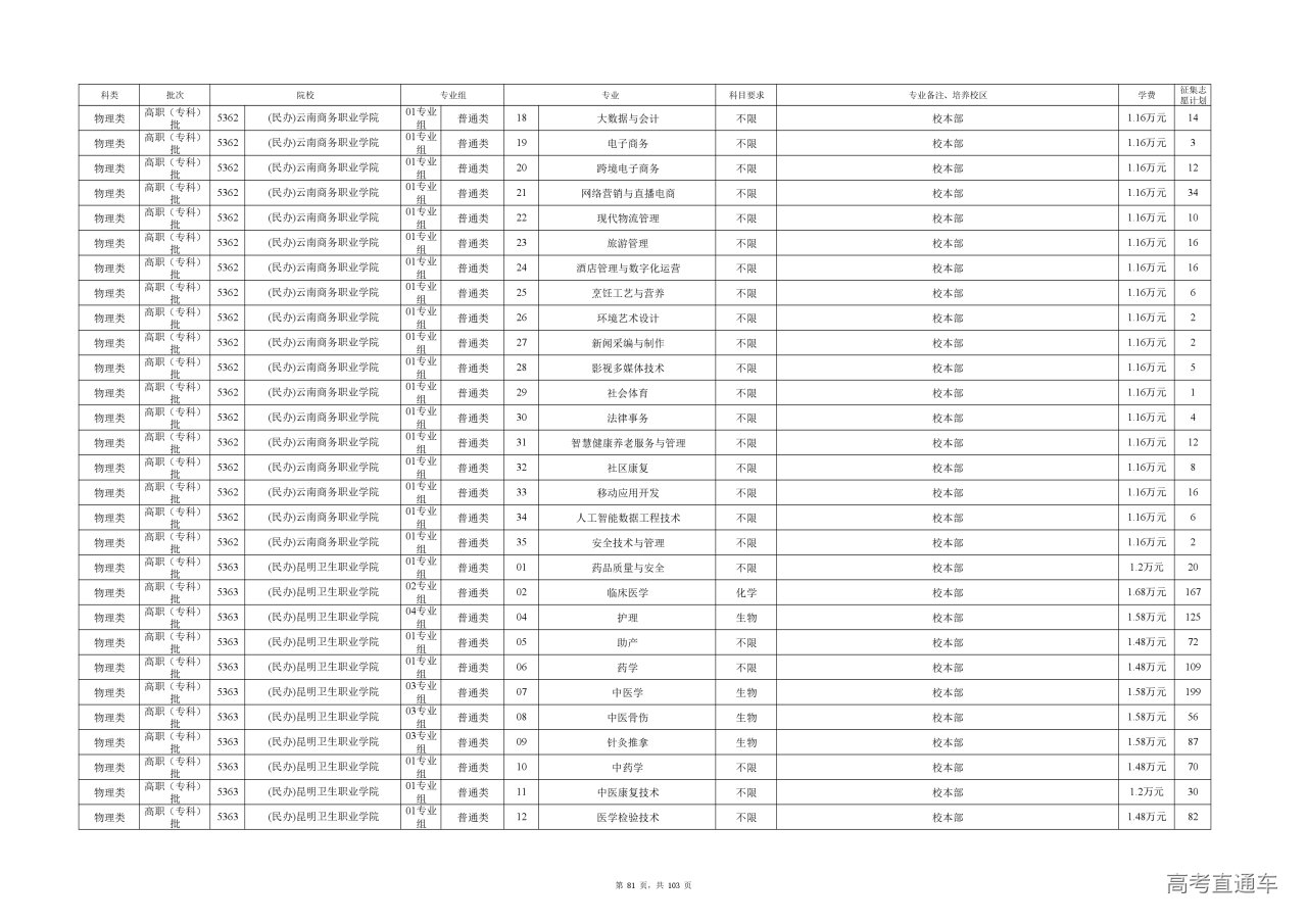附件(点击查看或下载):云南省2025年高职专科批征集志愿计划信息.xlsx
