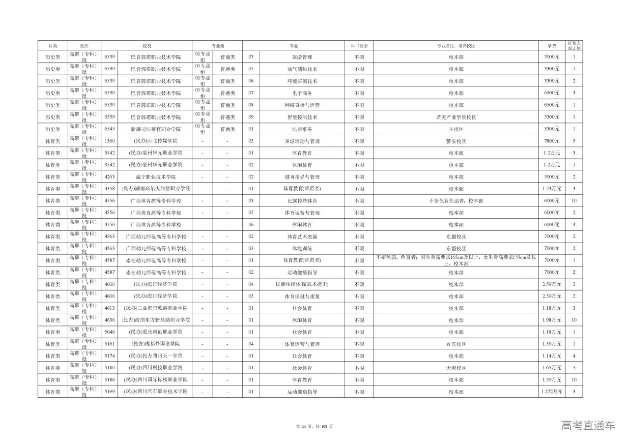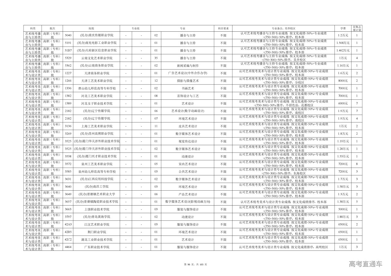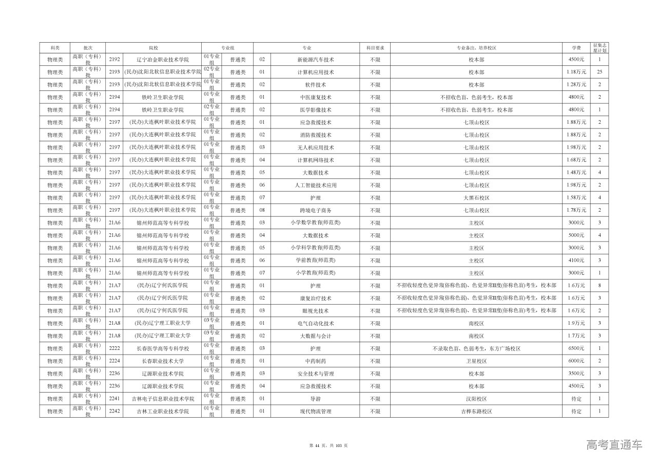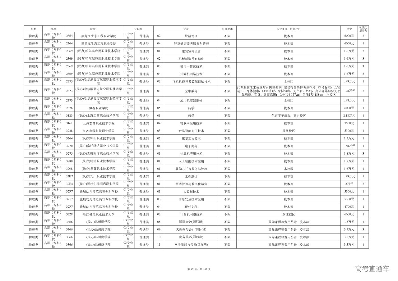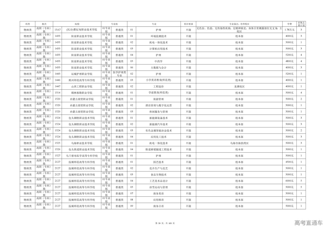 专业成绩:不低于尚有空余计划类别省级统考专业专科录取最低控制分数线。