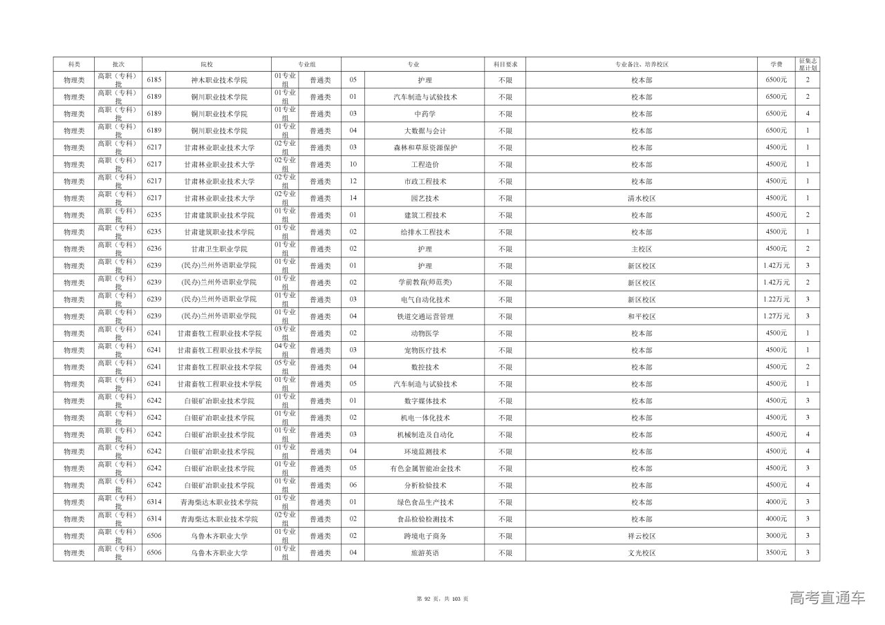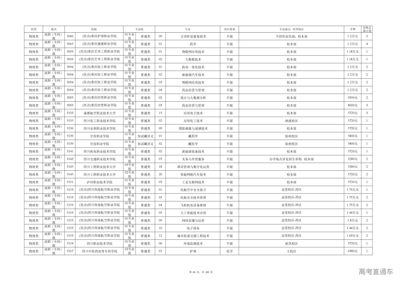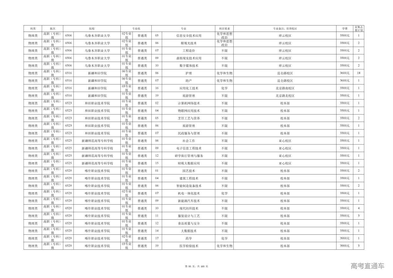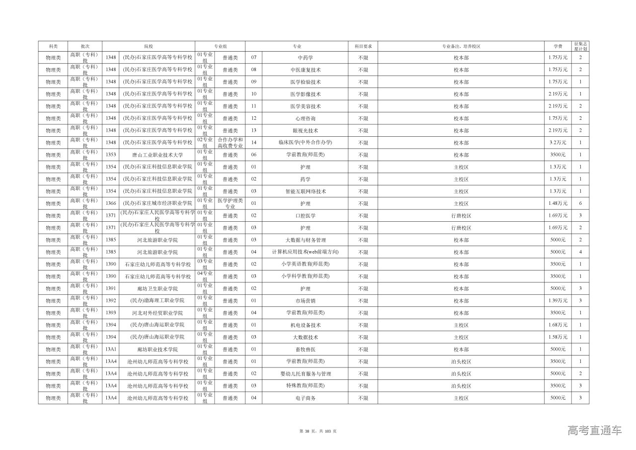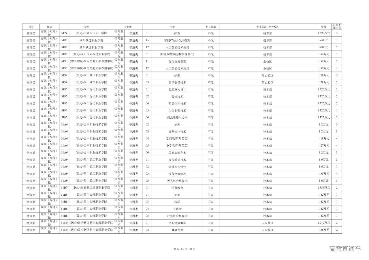 专业成绩:不低于尚有空余计划类别省级统考专业专科录取最低控制分数线。