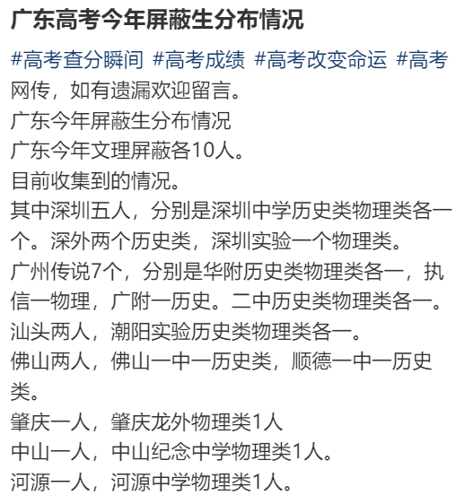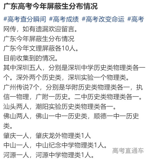 网传今年广东高考物理类、历史类高分考生(即前10名)各校分布情况如下: