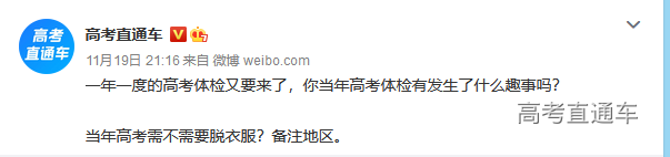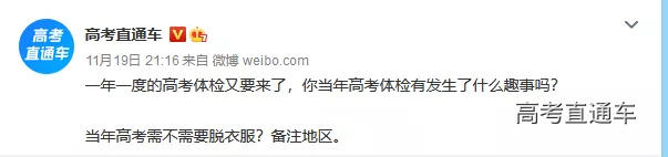 高考都是在全国同一时间考试的,是为了试卷的保密性,因为不同的地区都需要考试,所以各地在高考前都会在指定的医院进行体检。而每家医院的体检制度也各有不同,所以需不需要脱衣服进行体检还是要听从医院、医生的安排。
