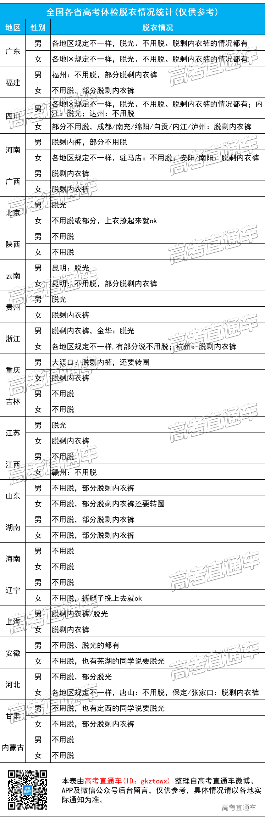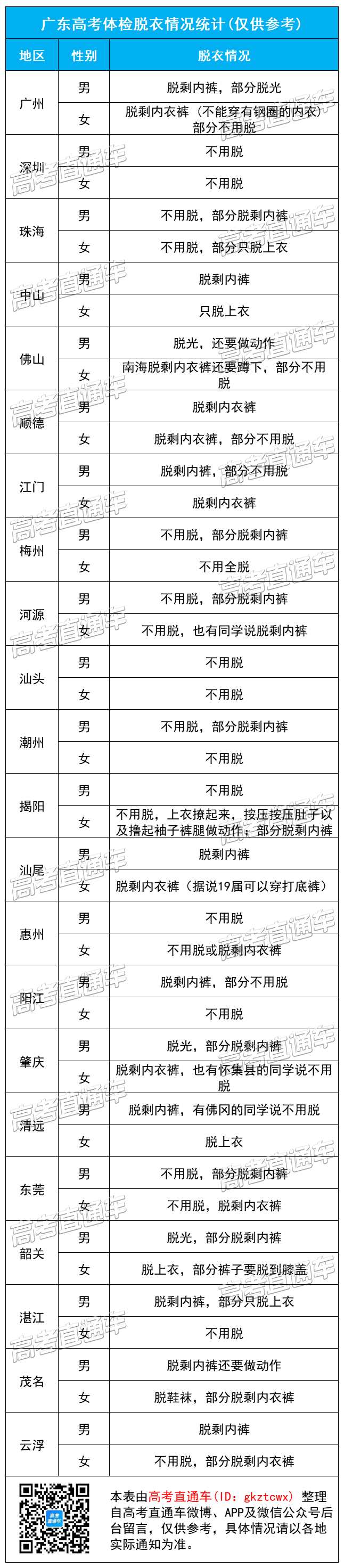 最后,再一起来看看广东各地市高考体检脱衣情况统计: