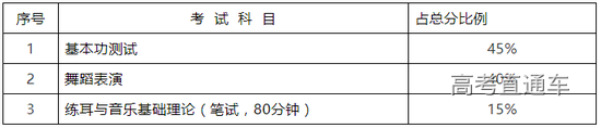 报考舞蹈表演专业的考生还须参加面试。舞蹈表演专业面试主要考查考生的形象、气质、身高等专业条件,要求:①五官端正,身材匀称,气质好;②男生身高不低于170cm,女生身高不低于160cm;③专业条件达到所报专业的规定要求。面试成绩只计合格与不合格,不计入省统考总分,作为报考专业录取的参考依据。