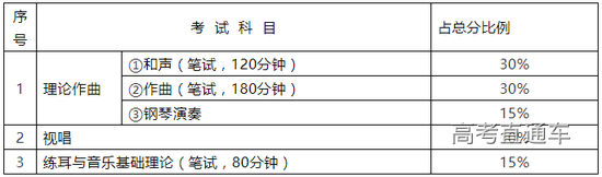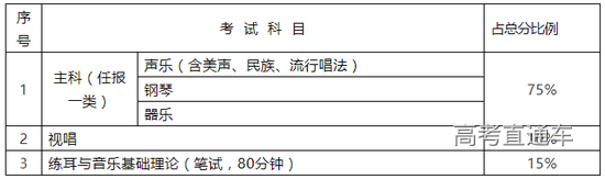 音乐类专业考试成绩总分为300分,具体考试科目根据主科所报类别的不同,分为两种类型: