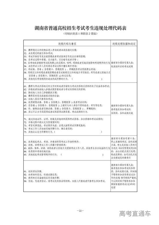附件:1。湖南省普通高校招生考试考生违规行为认定及处理程序