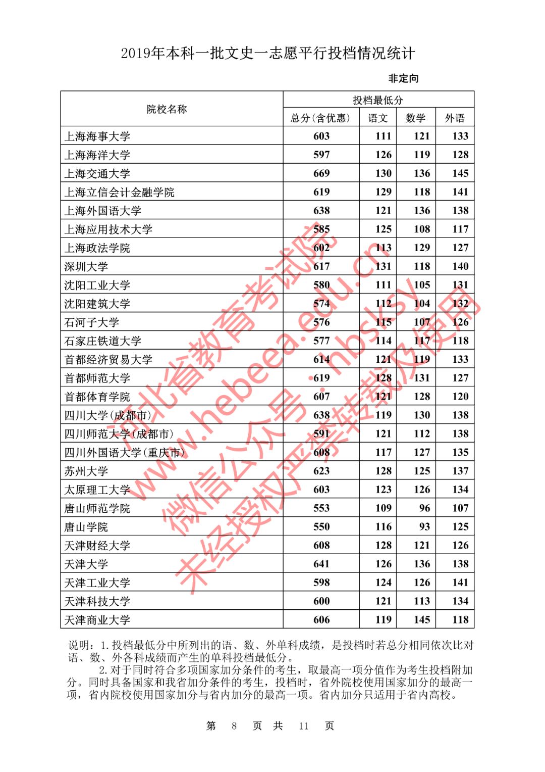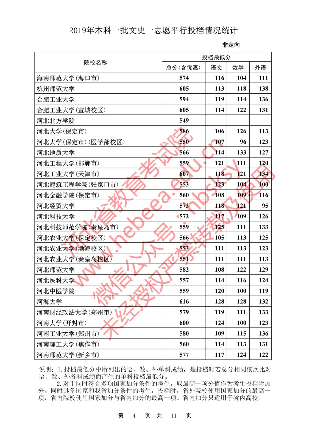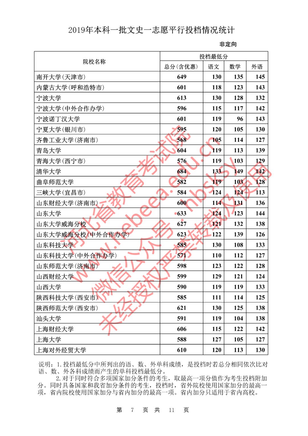 附:2019年河北本科一批理工一志愿平行投档情况统计
