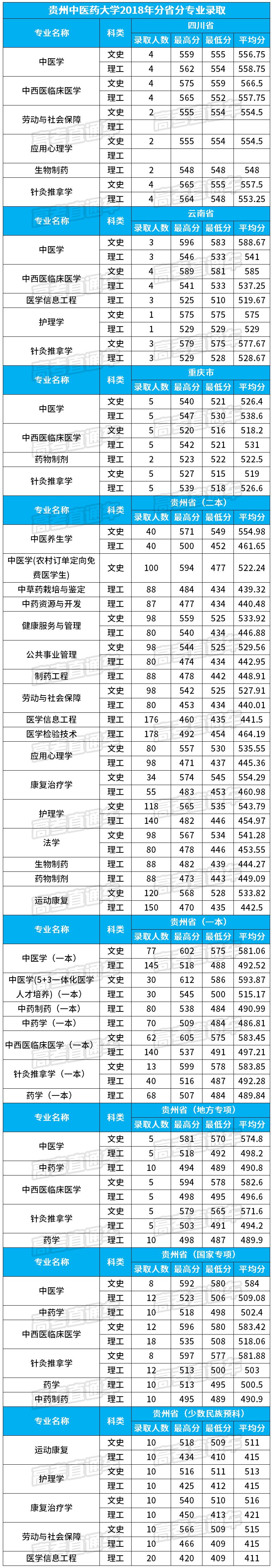 我们为大家整理到了贵州中医药大学2018年在云贵川渝多省分专业的录取分数线,大家可以参考一下哦~