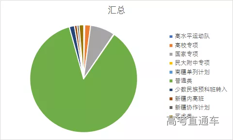 录取概况看这里 面向全国31个省(市、区) 我校2019年 实际录取3260人 普通高考招生 2807 高水平运动队 11 艺术类 44 高校专项 57 国家专项 241 少数民族预科班转入 50 新疆协作计划 20 南疆单列计划 3 新疆内高班 26 民大附中专项 1