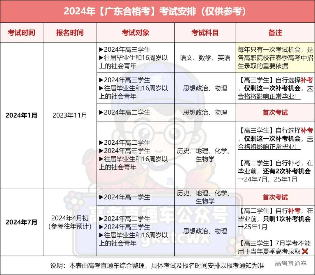 特别注意,由于广东已将每年两次学考的时间调整为1月和7月(原来是1月和6月),因此本次考试也是2024年高考录取前的最后一次合格考,需补考的高中应届同学不能错过这次机会。