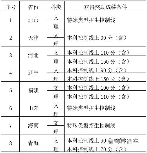 (一) 除本条第(二)至(四)项所列省份外考生:高考总成绩(不含各种政策性加分)达到或超过本省(自治区、直辖市)第一批本科录取最低控制分数线;