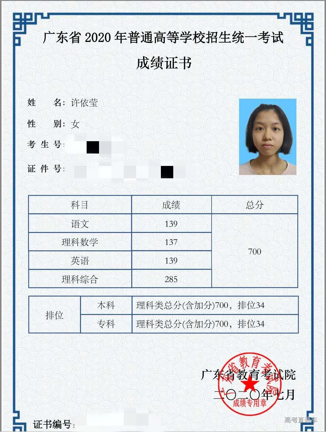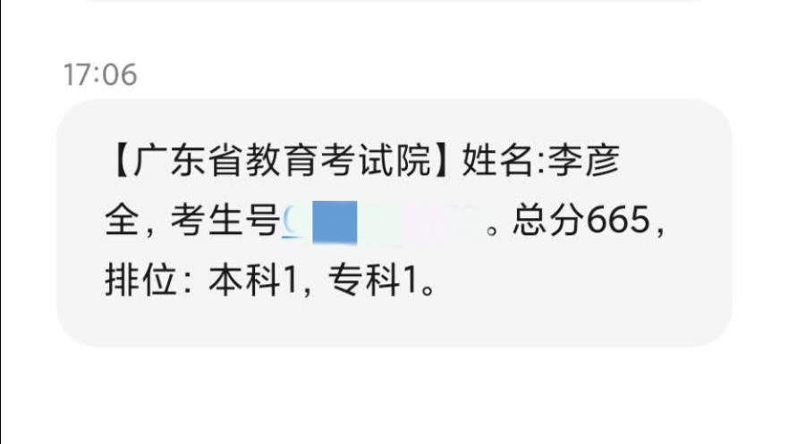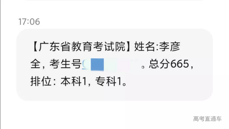 李彦全文科总分665分勇夺全省文科总分第一名!
