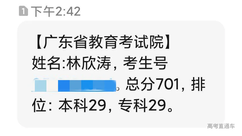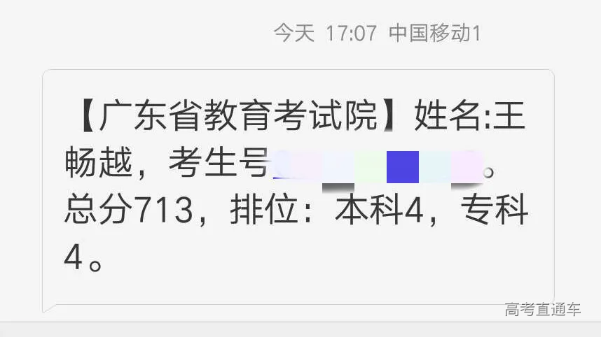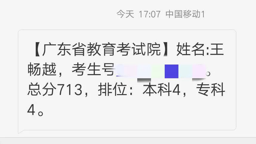 王畅越理科总分713分夺取全省理科总分第四名!