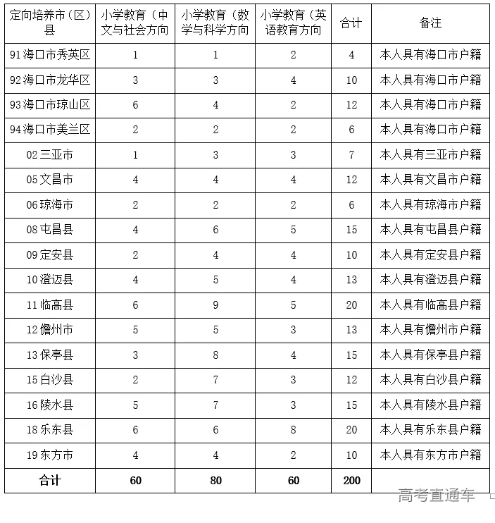 3.在《2020年填报志愿指南》第26页海南师范大学乡村小学教师定向公费培养师范生,考生须符合2020年我省高考不限制报考批次的条件且本人具有定向培养市县户籍的高中应届毕业生,招生计划及计划分配详见下表。