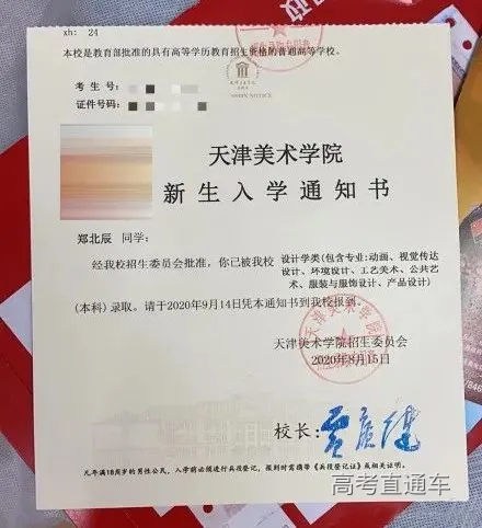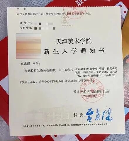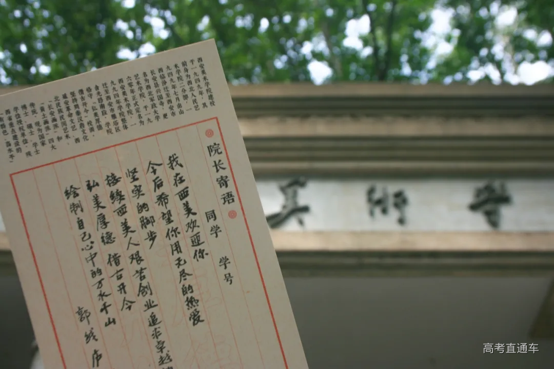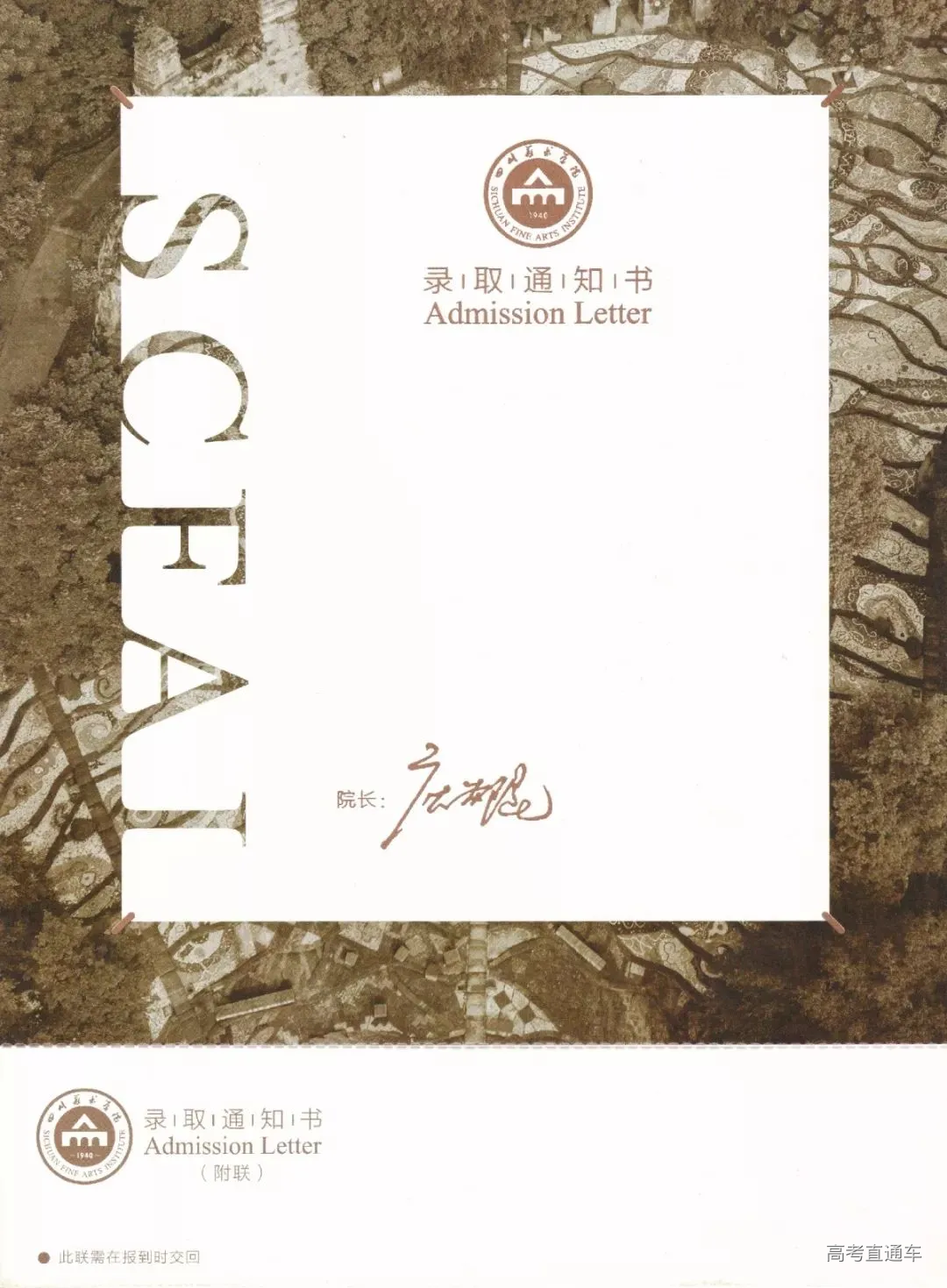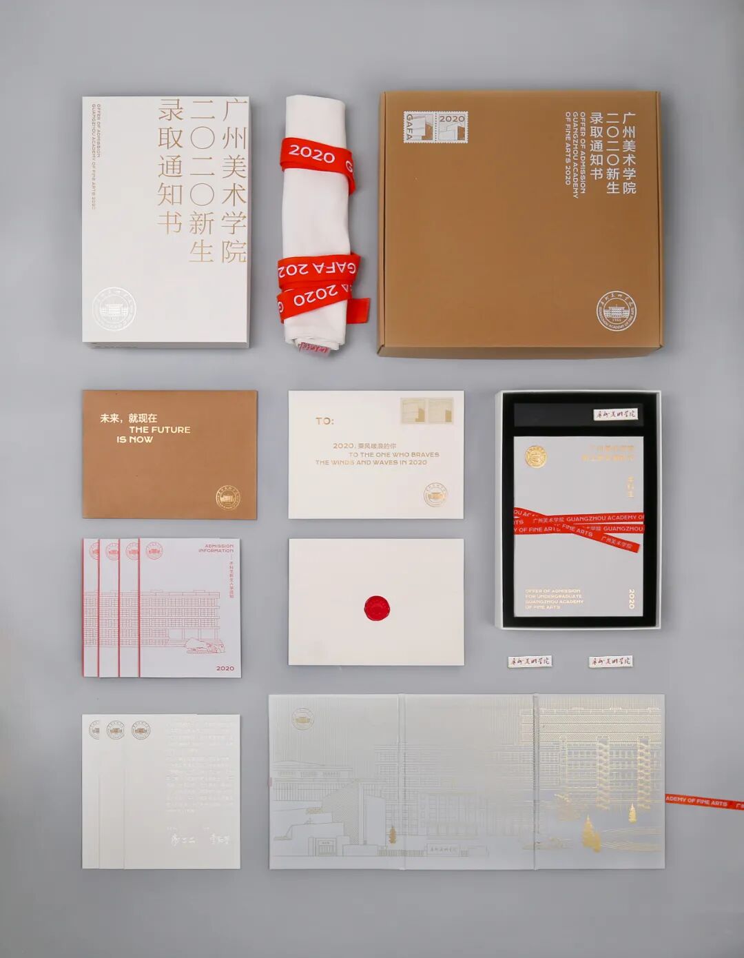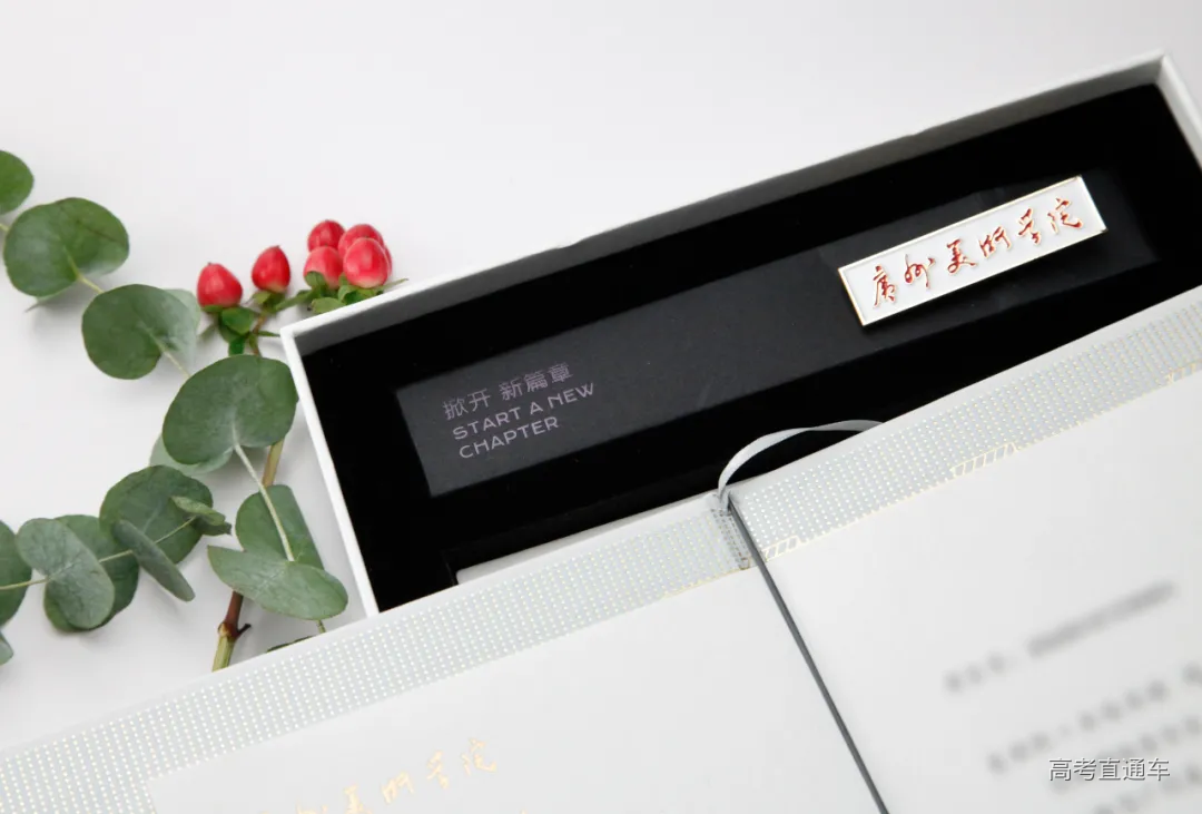 4 今年的广州美术学院 录取通知书是一个大礼盒 在设计上既有全新设计的录取通知书封页 还有面向世界的告白:“未来,就现在!” 红色是本科生,蓝色为研究生 除了精心设计的通知书 学校还专门送上寄语 信封以“TO 2020,乘风破浪的你”为题 信笺以暖心的关怀和殷切的嘱托为内容 并通过特别的设计 展现 “寻光而上,看见希望”的创意 这样精致又贴心的设计 5 湖北美术学院 今年湖北美术学院的 录取通知书与 百年校庆元素相结合,简约不失大气 通知书以经典的蓝白配色为主 结合百年校庆元素 一封信件承载着希望与祝福 给新湖美人带来一份憧憬和一份期盼 这封通知书拆开的不仅是一封信件 拆开的更是大学四年生活的开端 6 西安美院今年录取通知书 像是一封信笺,满载艺术底蕴 与西安美院的艺术精神一脉相承 今年的通知书采用 红白颜色搭配,整体简洁明快 红条白信封颇具威严 透过信封仿佛能目睹着西美峥 嵘岁月在纯净衰朽的时间里悄然流逝 打开后的“折子”里 隽秀的字迹宛如灵动的太极湖水 向新生缓缓流淌而来 表达着西美最真挚的欢迎 白底纸张上是纵向从右至左的字体排列 若你细细品味,似乎聆听到雁塔晨钟响遏行云 西美通知书的每个细节都饱含了西美对 每一位即将到来新生的用心 7 四川美术学院今年的 录取通知书简洁大方 精简的设计感体现了川美的艺术底蕴 也象征着众多川美学子在此 描绘着艺术的现在与未来 演绎着青春的激情与梦想 8 天津美术学院的通知书封面 是天美地标性建筑物 虽然也只有薄薄的一张纸 却承载着学院厚重的历史与希冀 望学子能砥砺前行,开拓新的未来 9 鲁迅美术学院 本科的通知书还没有发布 不过,大家可以先看看研究生的解解馋