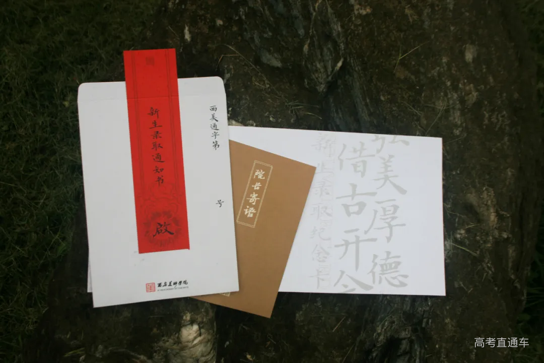 3 清华大学美术学院今年的录取通知书 在沿用去年设计的基础上 推陈出新,设计得更加完美 打开紫色外壳的清华大学录取通知书 一座微型立体“二校门”跃然纸上,让人爱不释手 今年的清华本科录取通知书 采用激光雕刻工艺, 30多件纸艺部件、上百个拼插结构组成 手工定制、独一无二的 清华大学立体二校门录取通知书 此外,随录取通知书一起寄出的 还有校长邱勇给新生的 赠书《乡土中国》以及致新生的信 寄语新生“植根家国热土,砥砺成长担当” 这也太有心了吧!!!