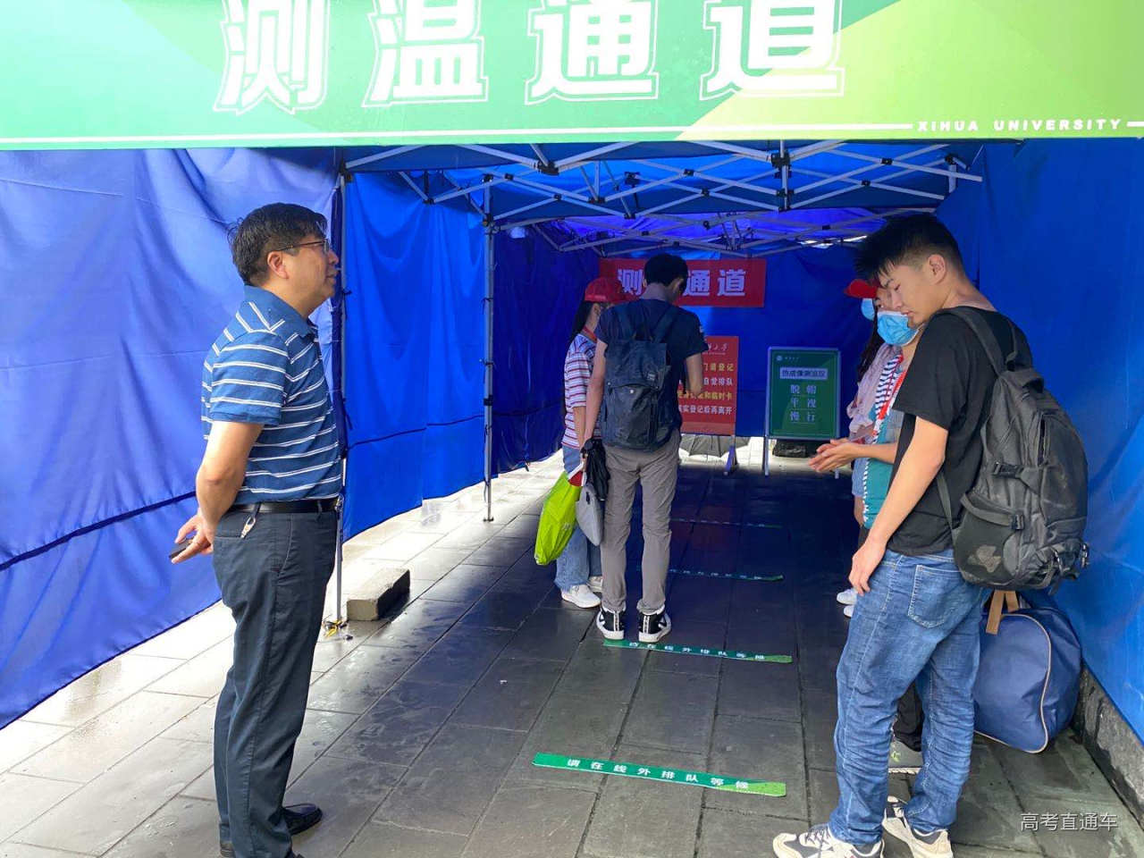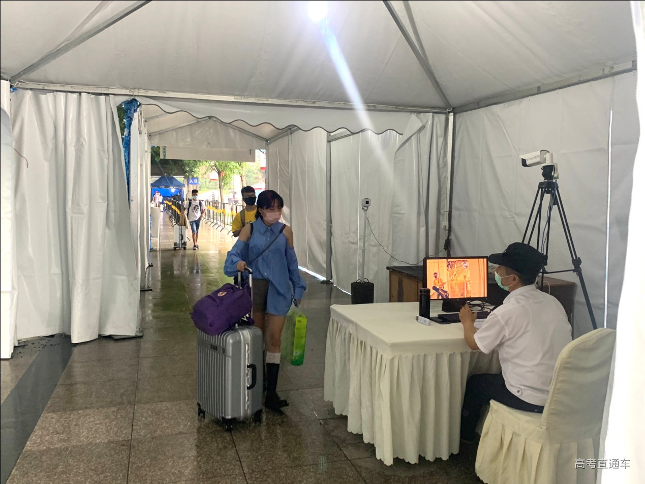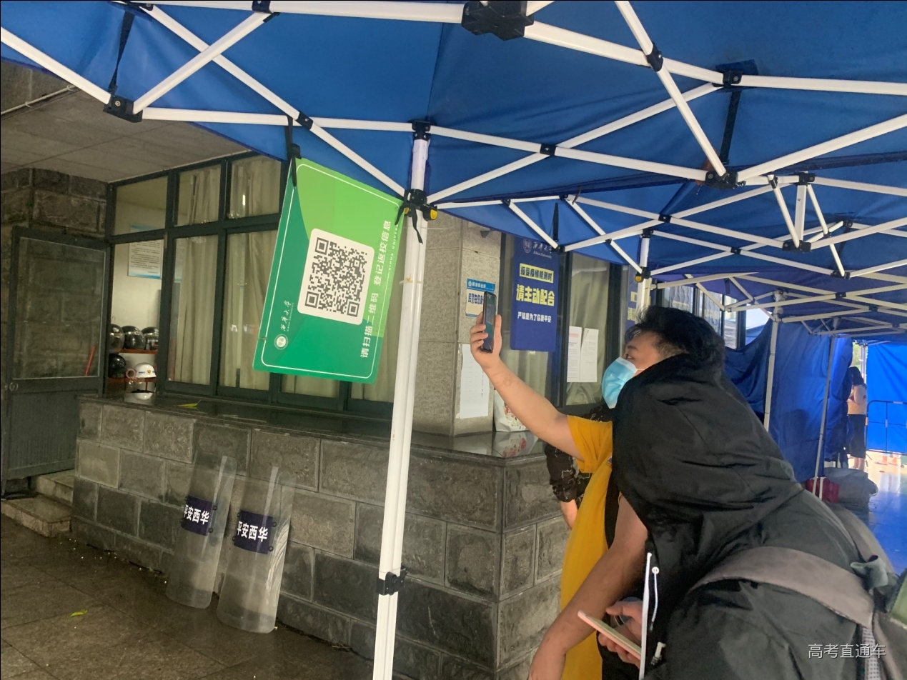 上午8:00左右,天上下着小雨,陆续有学生来到学校西大门和南大门,在志愿者的引导下,出示返校电子凭证和健康码,扫描二维码登记返校信息,并有序进入热成像体温筛查区进行体温检测。进入学校后,同学们或步行,或乘坐学校准备的小白龙回到寝室。同学们在寝室整理内务、打扫卫生,收拾妥当后,再到学院辅导员处登记报道。