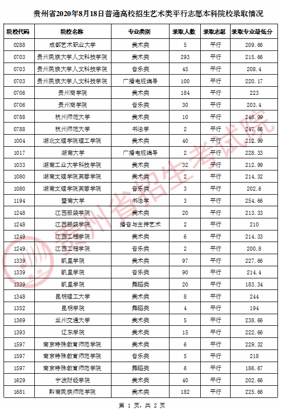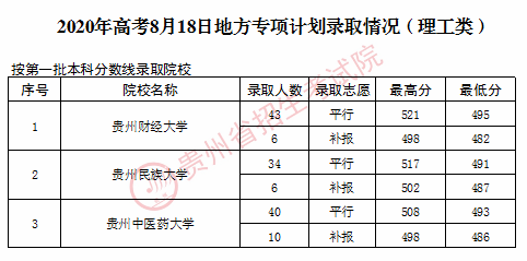 2020年8月18日贵州普通高校招生录取情况