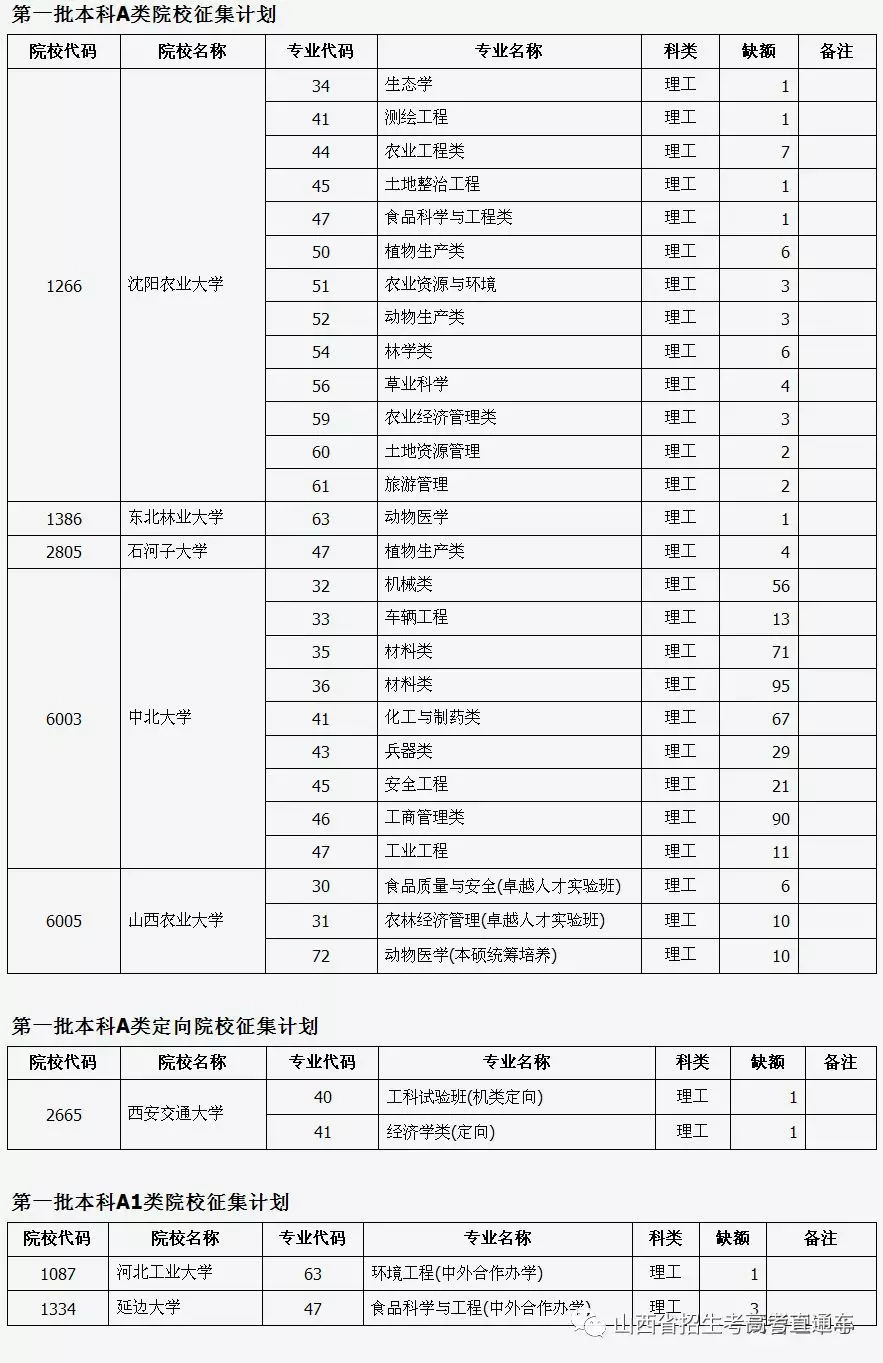 目前,我省第一批本科A类、A1类部分院校因生源不足、体检专业受限或考生不服从专业调剂退档出现缺额,现予集中公布,公开征集志愿。