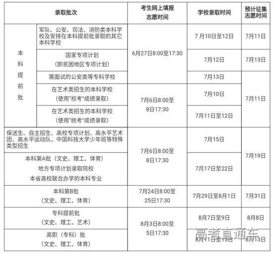 海南2019年填报志愿和录取时间安排: