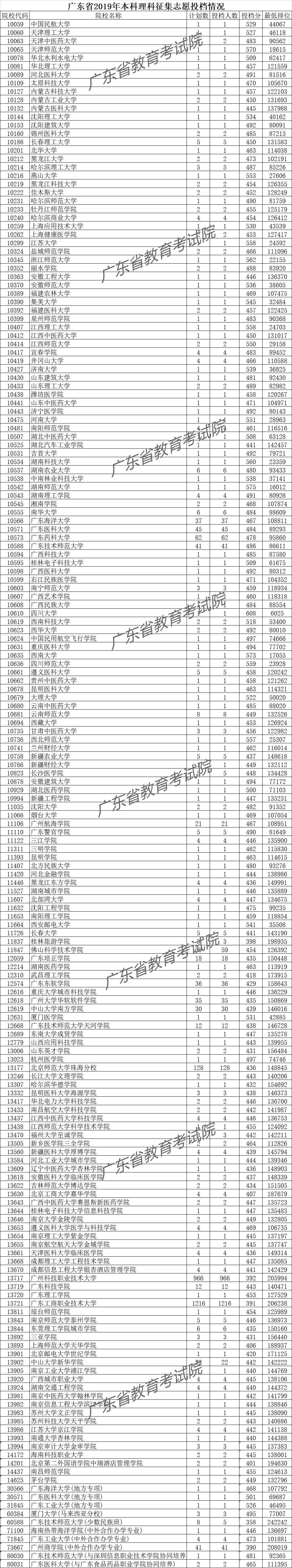 其他各类投档线详见:广东省2019年本科征集志愿投档情况(文/理/体育/美术/音乐/舞蹈/编导)