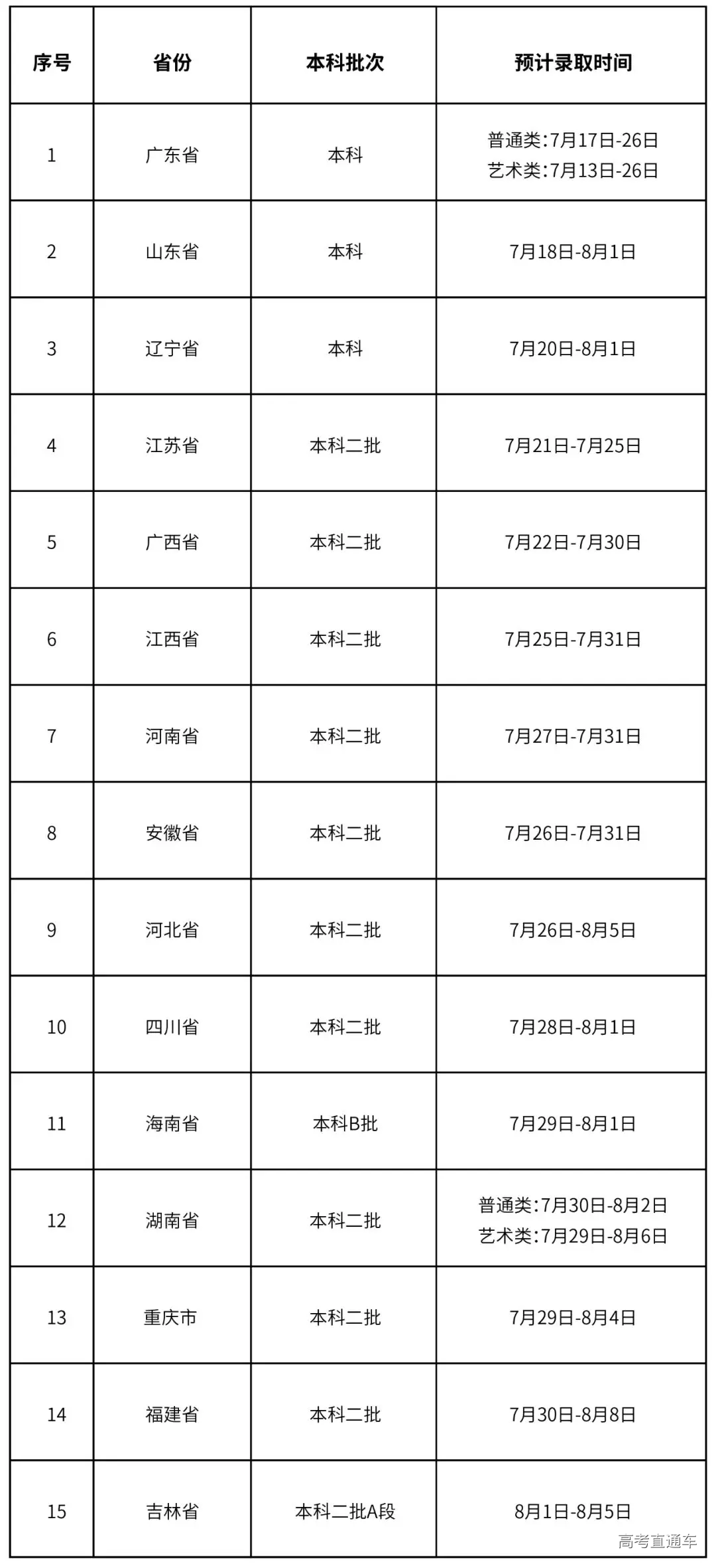 二、各省市录取时间