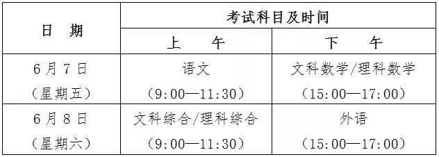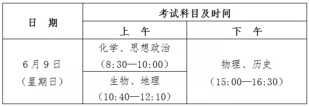 广东省2019年普通高等学校招生统一考试科目时间安排