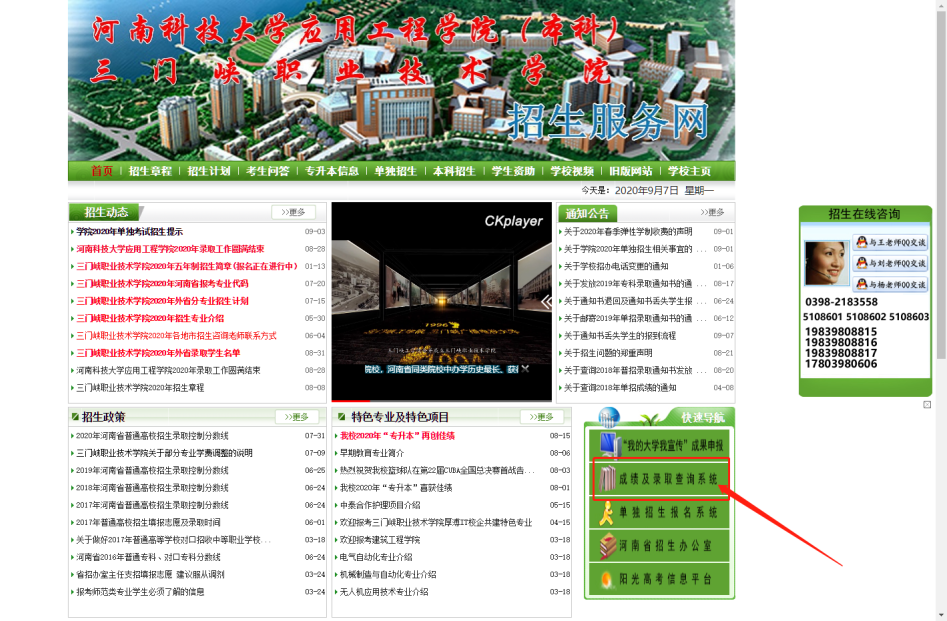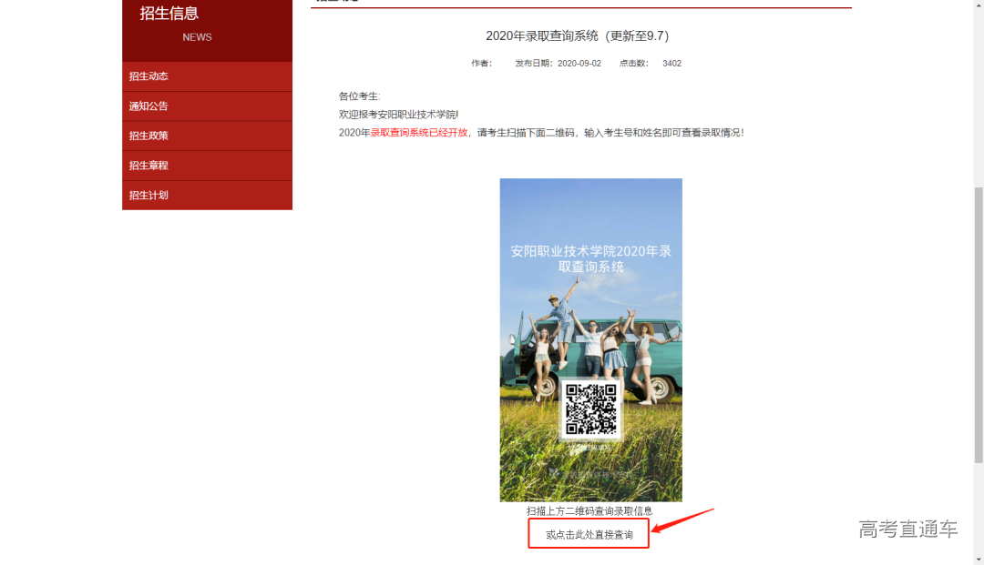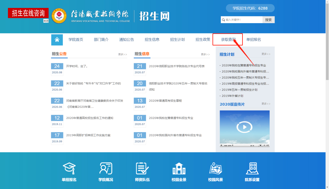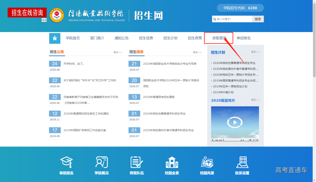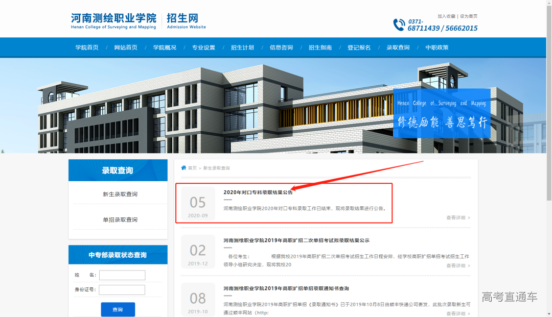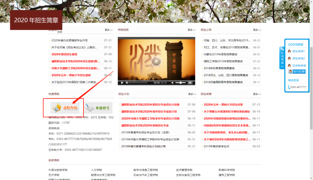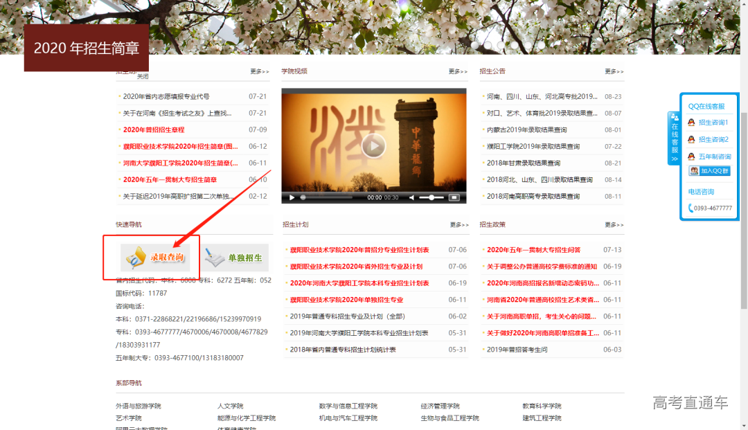 1、网上查询:2020年河南省高招录取查询方式(点击即可访问)