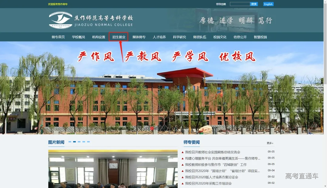 登录焦作师范高等专科学校官网(http://www.pyvtc.cn),点击导航栏“招生就业,进入焦作师范高等专科学校招生就业网点击“招生信息网”,点击页面右侧的“录取查询”,进入查询界面,正确输入考生信息后,点击“查询”即可查看录取结果。