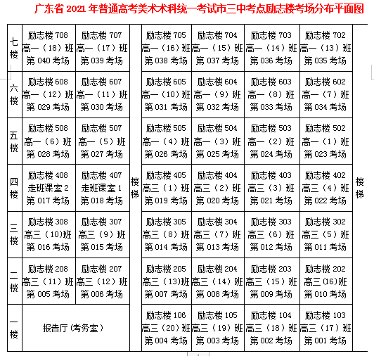 一、认真检查试卷、答卷和条形码是否正确。考生领到试卷、答卷、条形码后,须认真检查试卷、答卷页数,若有多张答卷应认真核对答卷页面是否正确;核对条形码上的姓名、考生号、科目是否与准考证上的内容相一致,如有缺页、空白页、漏印及条形码与考生本人的姓名、考生号不一致,请举手说明更换。二、准确填写答卷的相关栏目。考生必须用黑色字迹的签字笔或钢笔在答卷的有关栏目上写上本人的考生号、姓名、考场号、座位号。答卷不能折叠、撕破、穿孔,要保持答卷清洁。三、正确粘贴条形码。考生粘贴条形码时,需将条形码横贴在答卷“条形码粘贴处”栏框内,注意不能超出框外,避免影响答卷的扫描。四、规范作答。在指定答题区域内作答,答卷上不允许喷洒任何固定液体。五、在开考信号发出前或考试终了信号发出后答题按考试违规论处。素描和速写考试不允许提前交卷离场;色彩考试结束前30分钟起,方可交卷出场。六、交卷时,待监考员清点试卷、答卷无误后,色彩科目还需考生签名确认答卷风干,考生方可离开考场。严禁将答卷和试卷带出考场,严禁对作品(答卷)拍照,否则按考试违规处理,取消考试成绩。 若考生因术科考试作弊取消术科成绩,则本人2021年高考文化科目成绩同时取消,情节严重的会影响2022年高考报考。考试终了信号发出后,立即停笔,全体考生起立,并取下自己的素描、速写科目答卷拿在手上,在监考员依序收齐答卷和试卷后,根据监考员指令依次退出考场,不准在考场逗留。考试终了信号发出后,立即停笔,全体考生起立,并取下自己的色彩科目答卷拿在手上,如图所示:如需风筒吹干,请举手示意,听从监考员安排,逐个吹干;如无需风筒吹干,则等候监考员到考生座位逐个回收考生答卷。考生交卷签名后,方可拿齐自己的考试用品离开考场。下面为大家奉上清远市第三中学考点平面示意图、考场示意图。考生们,笃行楼、励志楼也要分清楚噢!