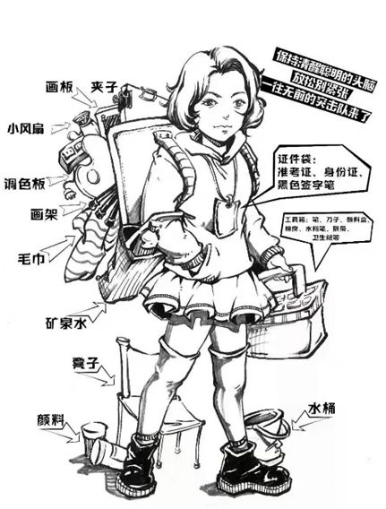 1、考点、考场开放时间:12月5日下午15:00—17:00(考生凭身份证和准考证出入考点)一、考生必须自觉服从监考员等考试工作人员管理,自觉接受监考员使用金属探测仪进行安全检查,不得以任何理由妨碍监考员等考试工作人员履行职责,不得扰乱考点及其他考试工作地点的秩序。二、考生凭准考证、身份证(现役军人身份证件),按规定时间和准考证上各科目的考场、座位号参加考试。三、考生只准携带画板(夹)(不大于4开)、画架(不高于80厘米)、画笔、颜料、书写黑色字迹的钢笔或签字笔、铅笔、炭笔和橡皮等相关绘画用具以及座凳。考生携带的画板或画夹必须干净且无任图案、图形等痕迹。色彩科目考生可携带便携式电池小风扇。严禁携带任何书刊、报纸、稿纸、定形液、涂改液、各种无线通讯工具(如移动电话、无线耳机)、电子存储记忆录放设备和照相机,有图案的画板、纸张、资料等物品进入考场。四、素描和色彩开考前30分钟凭准考证、身份证(现役军人身份证件),考生通过指纹识别或人脸识别等考生身份验证后,进入考场,对号入座。入座后将准考证、身份证等有效证件夹(贴)在画板(夹)左上角以便让监考员核验。考生领到答卷、条形码和试卷后,须认真核对答卷的张数,核对条形码上的姓名、考生号与自己准考证上的信息是否一致。如不一致,应向监考员提出更换。在规定的时间内用黑色字迹的签字笔或钢笔准确清楚地填写答卷上的姓名、考生号、考场号、座位号,并将条形码横贴在答卷左上角的“条形码粘贴处”栏框内。凡漏填、错填或字迹不清的答卷,导致无法正常评卷的,责任考生自负。六、素描和色彩科目开考15分钟后,禁止迟到考生进入考点参加考试;速写科目考生不得迟到,否则将被视为放弃该科目考试。素描和速写科目不允许考生提前交卷;色彩科目考试结束前30分钟起,考生方可交卷出场,交卷出场后不得再进场续考,也不得在考场附近逗留或交谈。七、素描和速写科目为一场考试,两个科目考试间隔时间段内,不允许考生离开考场。八、考生须在答卷规定的区域答题。不准用规定以外的笔和纸答题,不准在答卷做任何标记,不准在答卷上喷洒任何固定液体,否则答卷无效。凡不在指定答题区域作答,其答案一律无效。九、在考场内须保持安静、不得吸烟,不得喧哗,不得交头接耳、左顾右盼、打手势、做暗号,不得夹带、旁窥、抄袭或有意让他人抄袭,不准交换答卷,不得传递工具、物品等,不得将试卷和答卷带出考场。不得对作品(答卷)拍照。十、考试过程中,考生如需上洗手间,应先举手示意,经监考员允许后,由工作人员陪同前往。十一、遇试卷分发错误及试题字迹模糊等问题,可举手询问;涉及试题内容的疑问,不得向监考人员询问。十二、考试终了信号发出后,立即停笔,考生全体起立,在监考员依序收齐答卷和试卷后,根据监考员指令依次退出考场,不准在考场逗留。十二、如不遵守考场规则,不服从考试工作人员管理,有违规等行为的,按照《中华人民共和国教育法》《国家教育考试违规处理办法》(教育部令第33号)确定的程序和规定严肃处理,并将记入国家教育考试诚信档案;涉嫌违法的,移送司法机关,按照《中华人民共和国刑法》《最高人民法院、最高人民检察院关于办理组织考试作弊等刑事案件适用法律若干问题的解释》等法律规定追究法律责任。广东省2021年普通高考美术术科统一考试考生注意事项