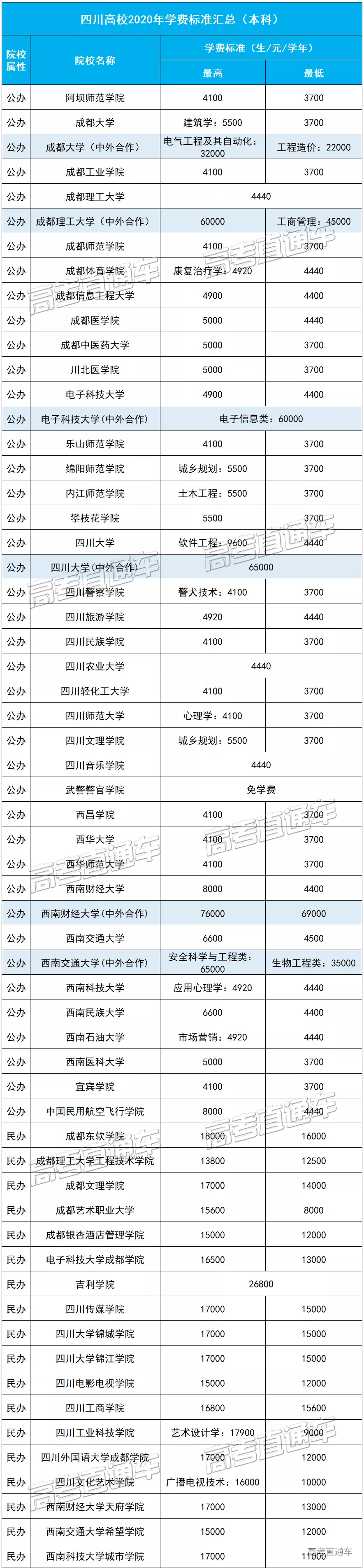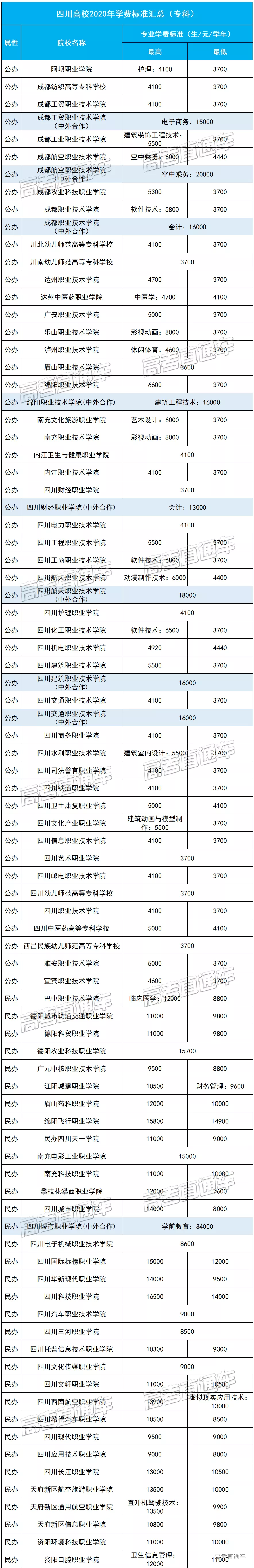 1、表中各高校的专业学费标准整理自2020四川高考招生报,如有出入,请以实际为准。